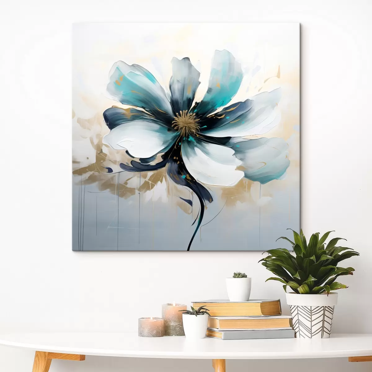 Obraz Turkusowy kwiat w stylu malarstwa olejnego Nr s45641