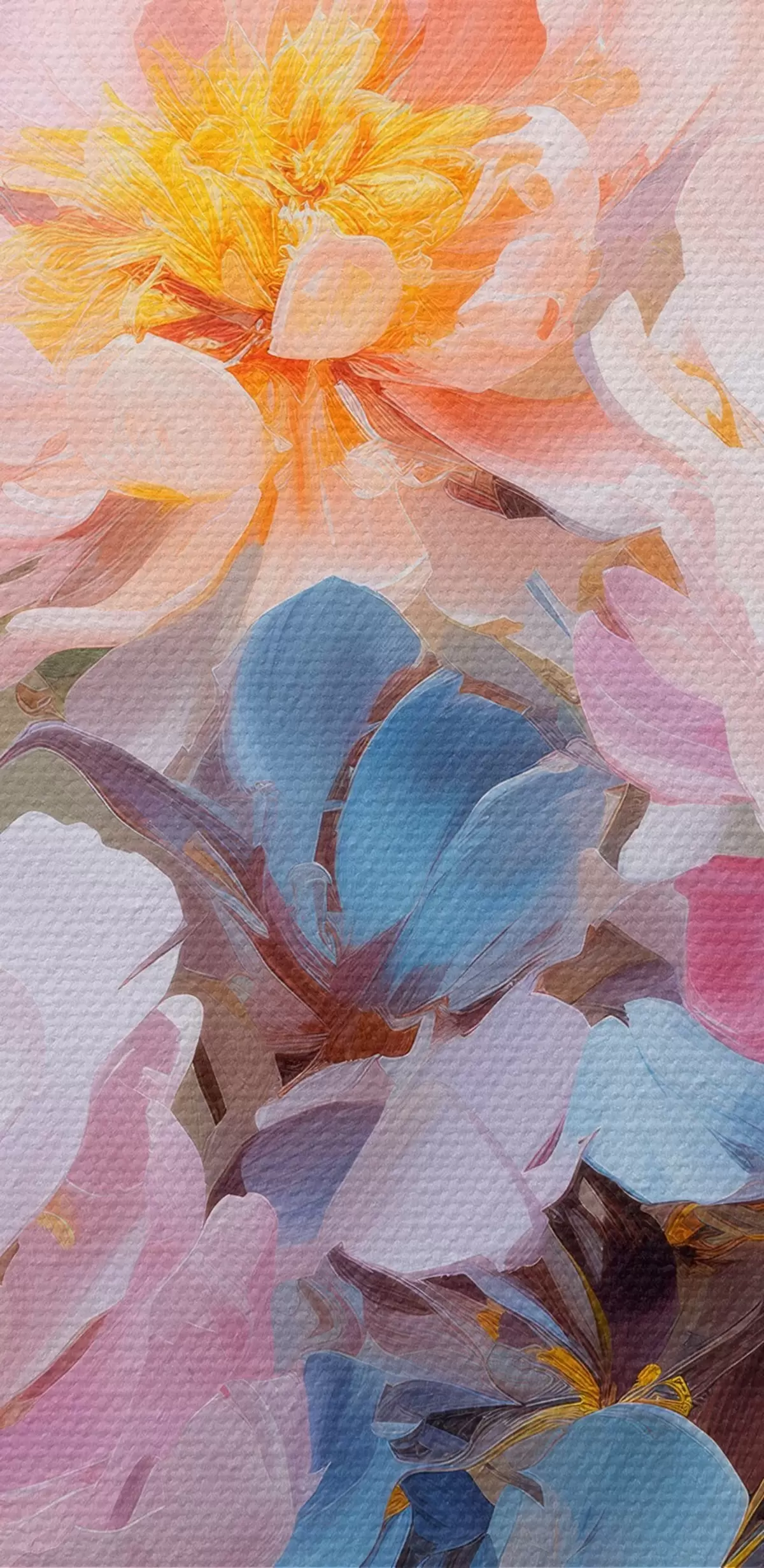Obraz Abstrakcyjne kwiaty: odcienie różu i błękitu Nr s45652