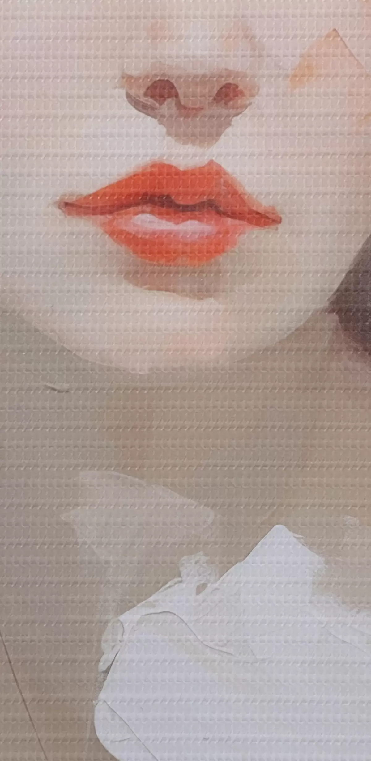 Drobny splot nici na tym płótnie przypomina powierzchnię profesjonalnych płócien artystycznych.