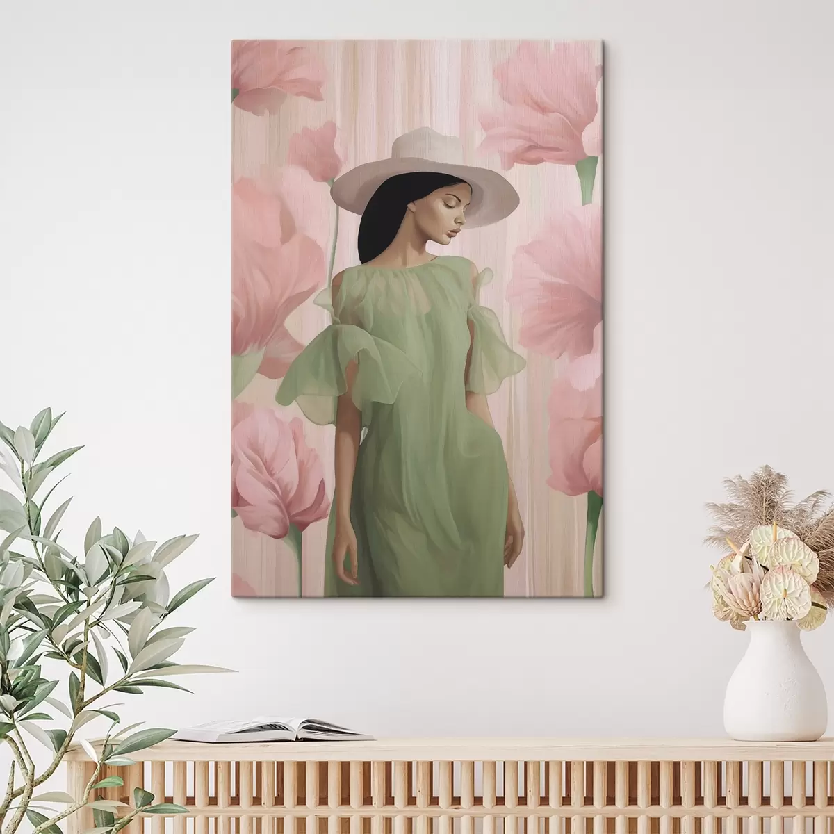 Obraz Dziewczyna w kapeluszu wśród kwiatów Nr s45678