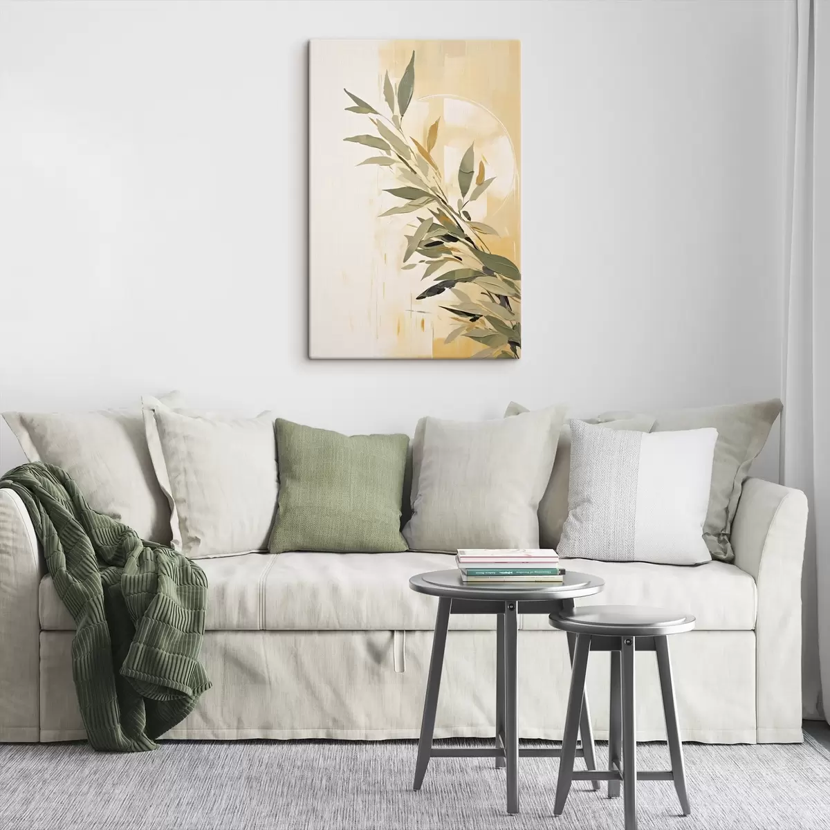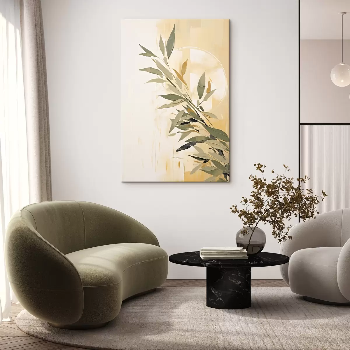 Obraz Botaniczna gałąź z zielonymi liśćmi na ciepłym tle Nr s45690