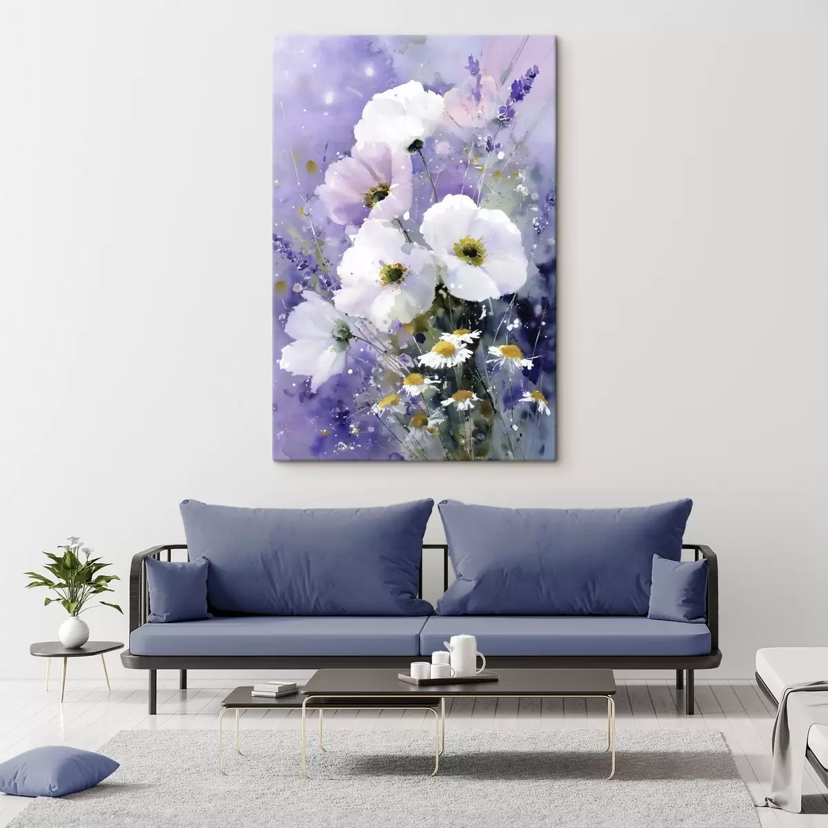 Obraz akwarelowy bukiet w odcieniach bzu i bieli s45719