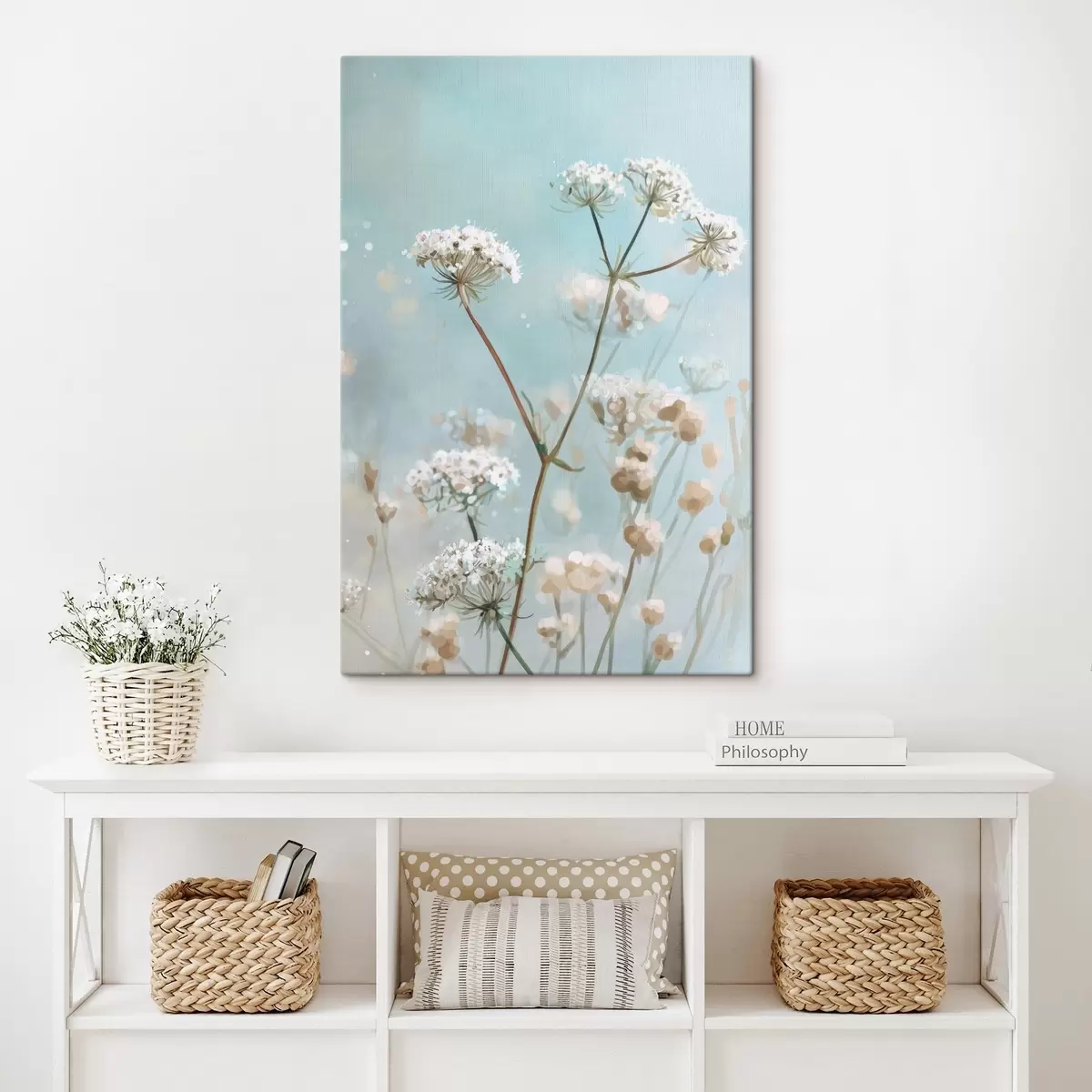 Obraz Kwiaty Queen Anne's Lace w stylu akwareli na niebieskim tle s45722