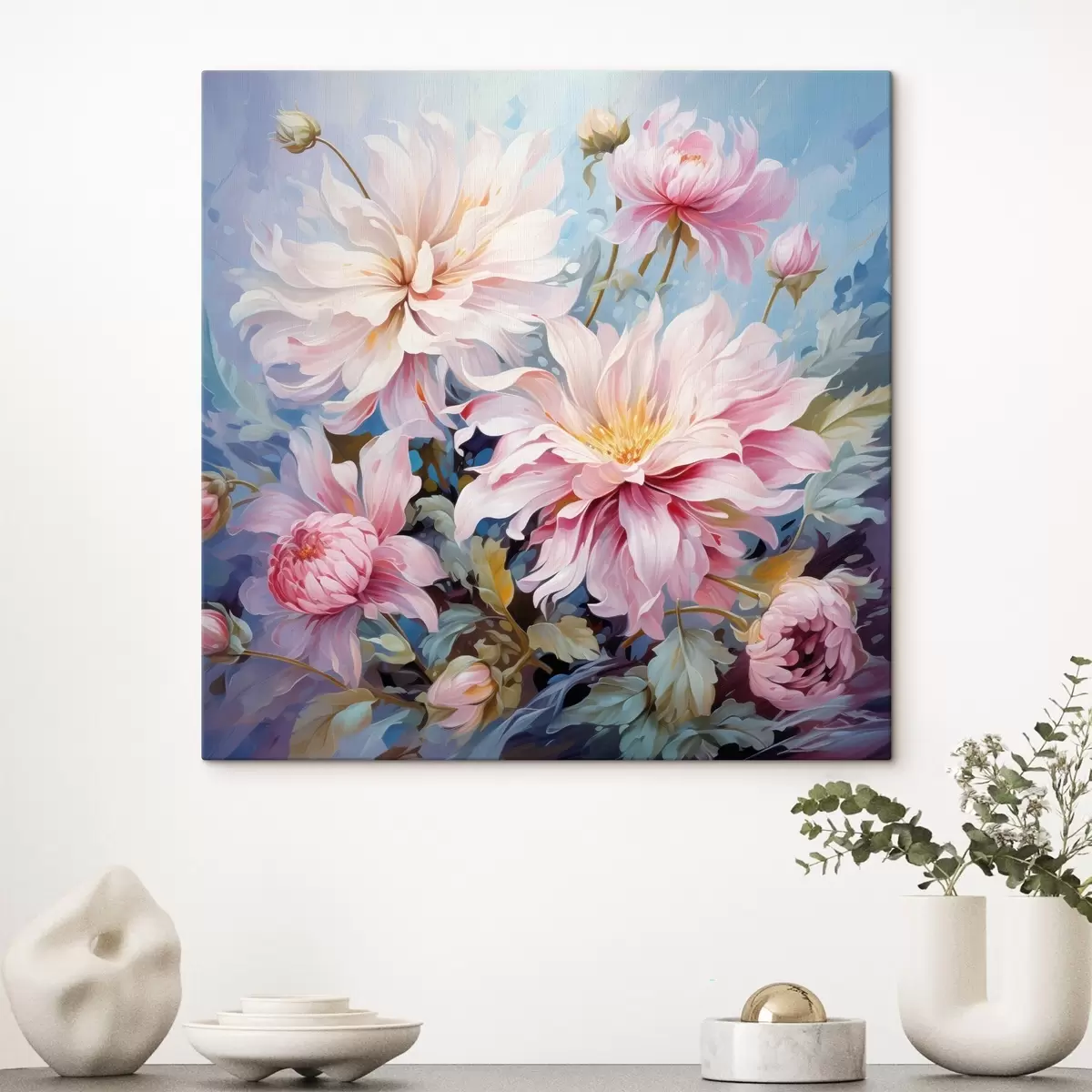 Obraz można powiesić natychmiast po jego otrzymaniu. Obraz zostanie naciągnięty na drewniany blejtram o szerokości 2 cm.