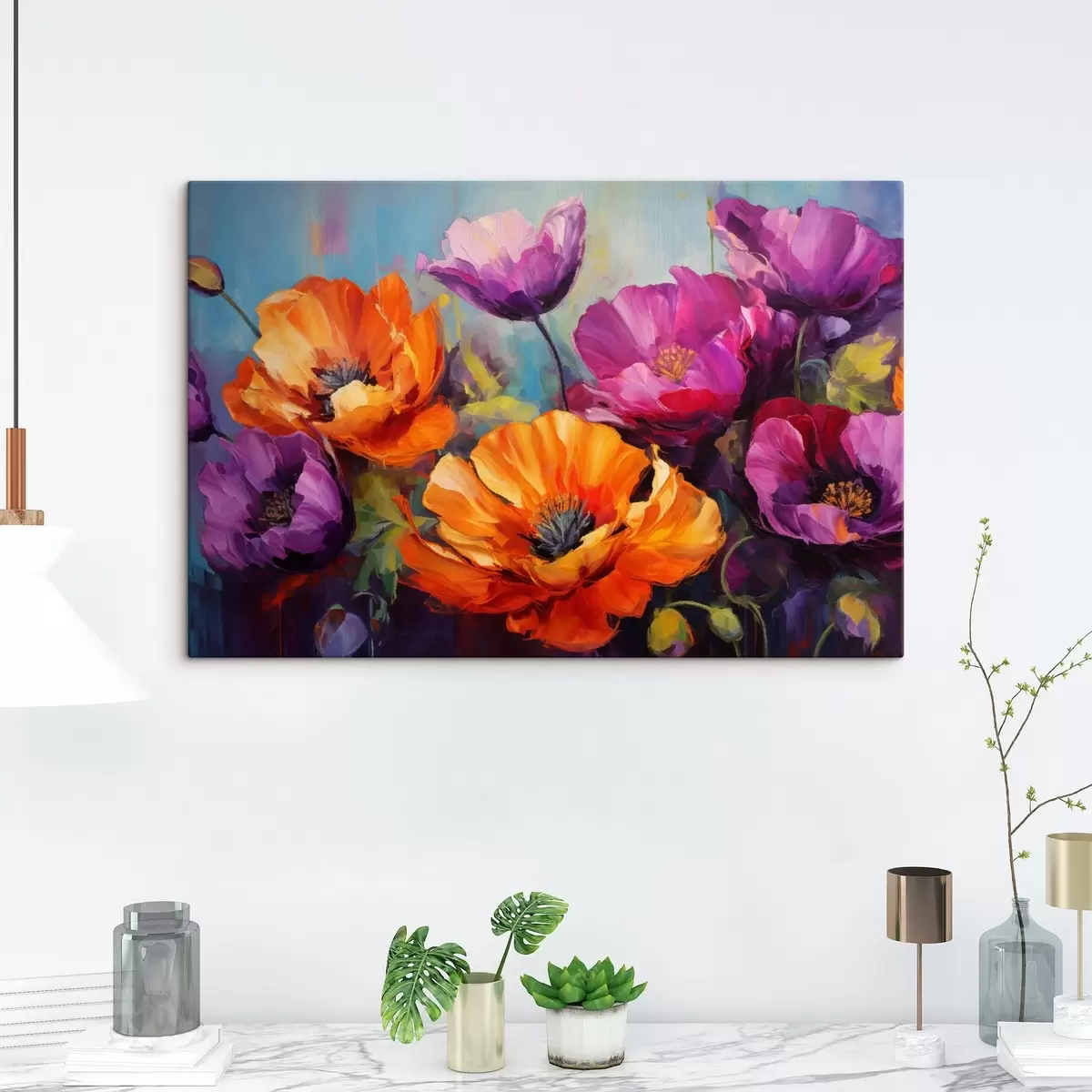 Obraz Jasne maki w odcieniach fioletu i pomarańczy Nr s45804