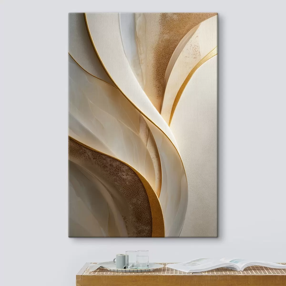 Obraz Abstrakcyjne krzywe z akcentami w kolorze żółto-pomarańczowym i beżowym Nr s45807