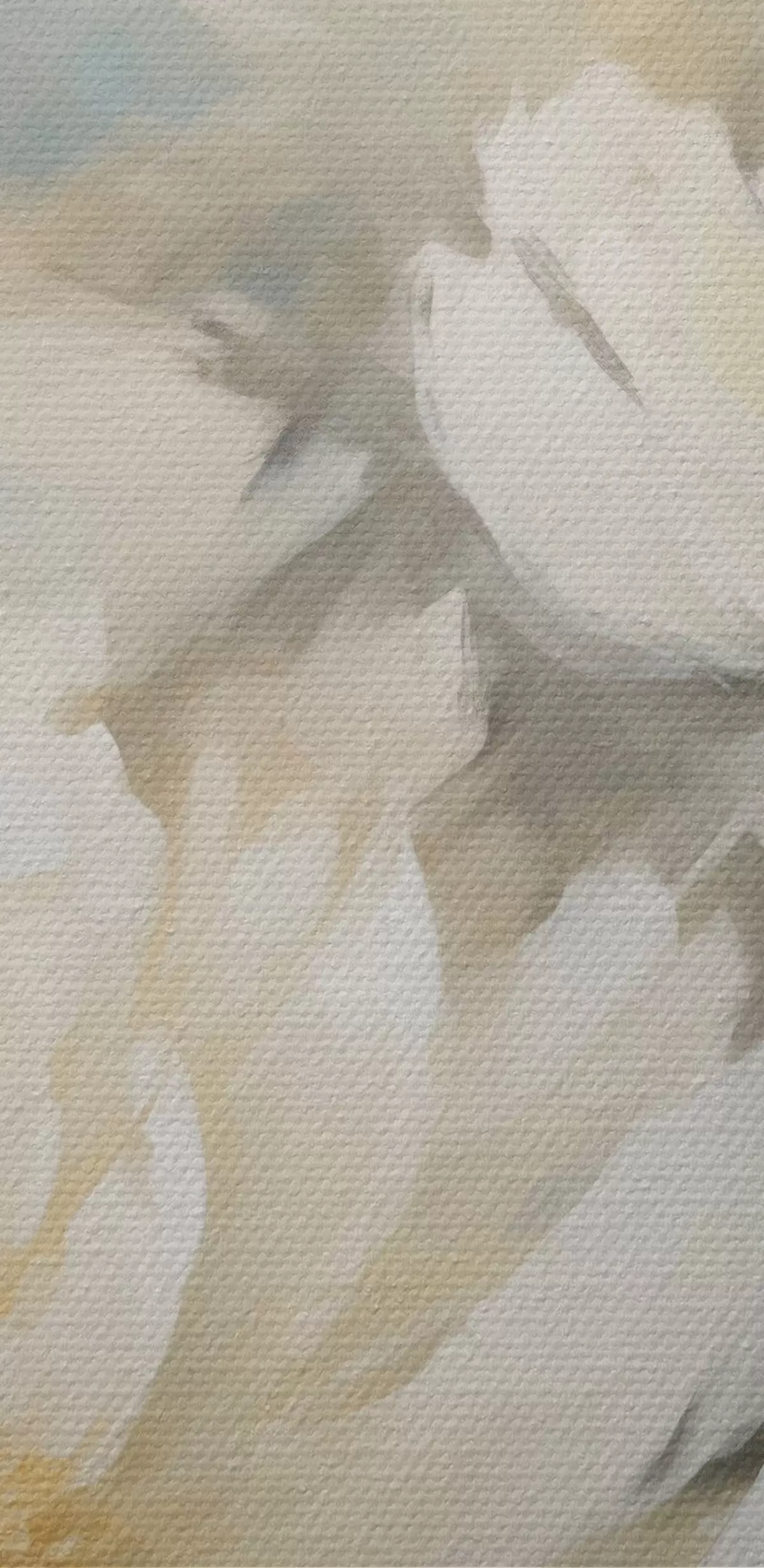 Drobny splot nici na tym płótnie przypomina powierzchnię profesjonalnych płócien artystycznych.