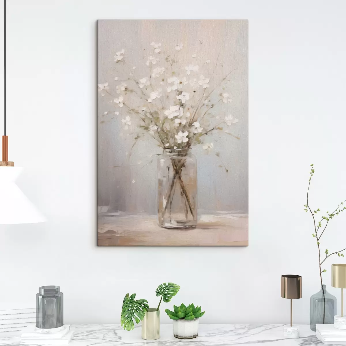 Obraz Bukiet białych kwiatów w przezroczystym szklanym wazonie Nr s45814