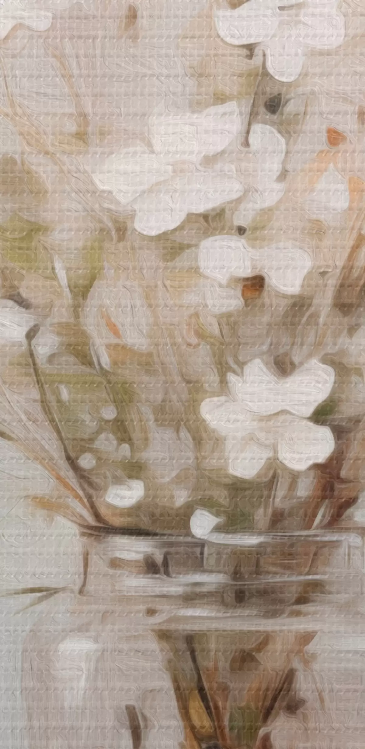 Drobny splot nici na tym płótnie przypomina powierzchnię profesjonalnych płócien artystycznych.