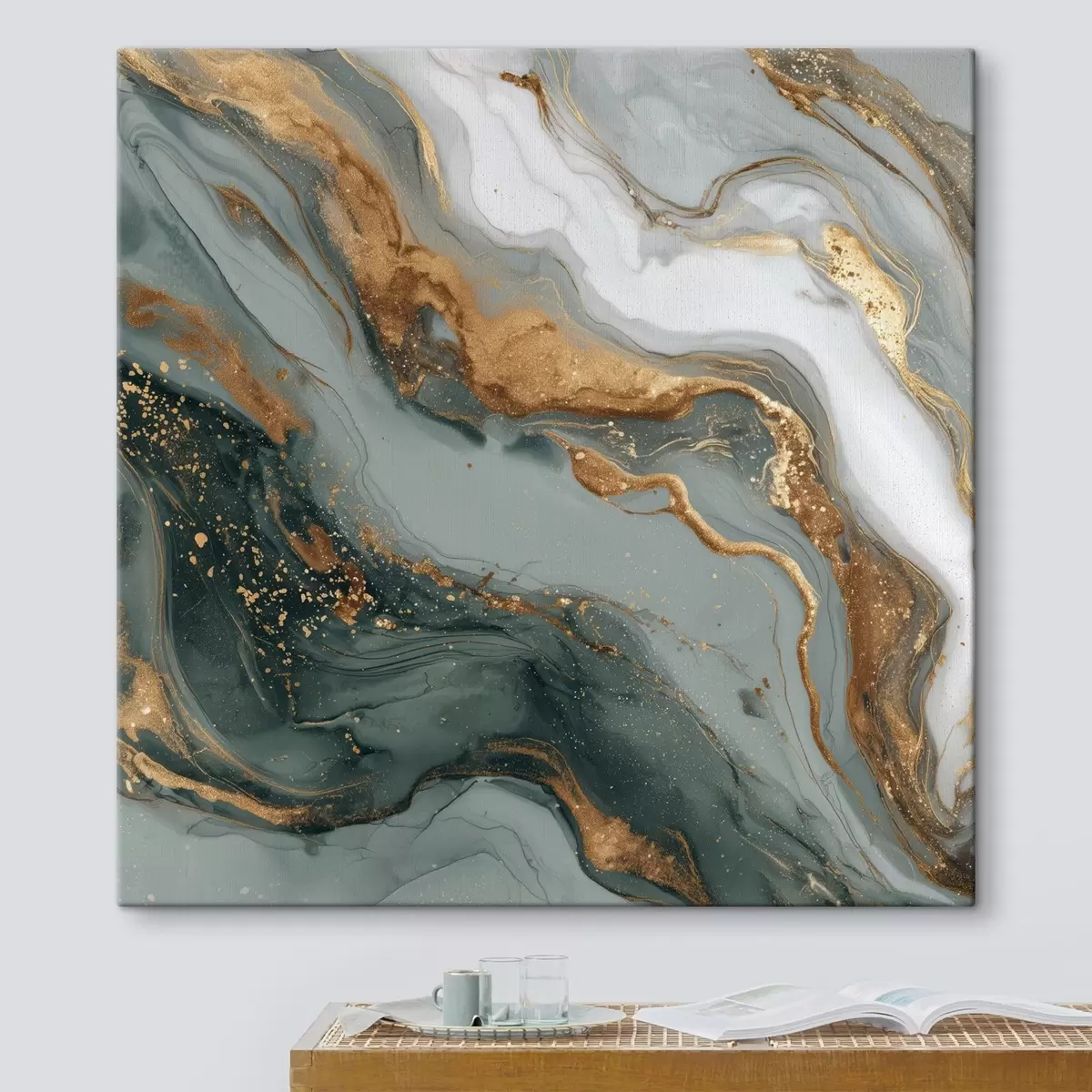Obraz Abstrakcja z ciemnozielonymi i szarymi smugami Nr s45858