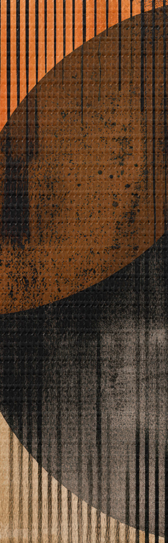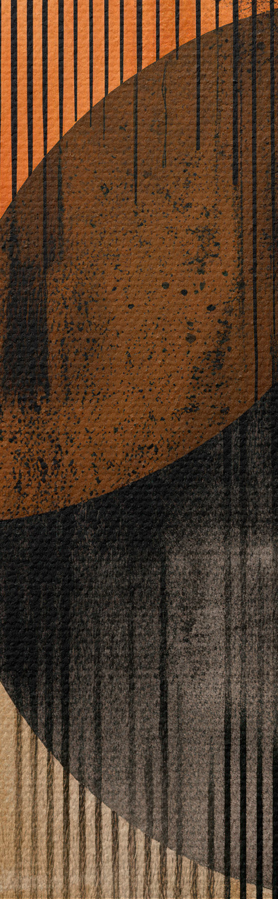 Obraz Trzy teksturowane koła z liniami w palecie kolorów terakota-czerń Nr s45885
