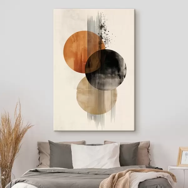Obraz Trzy teksturowane koła z liniami w palecie kolorów terakota-czerń Nr s45885