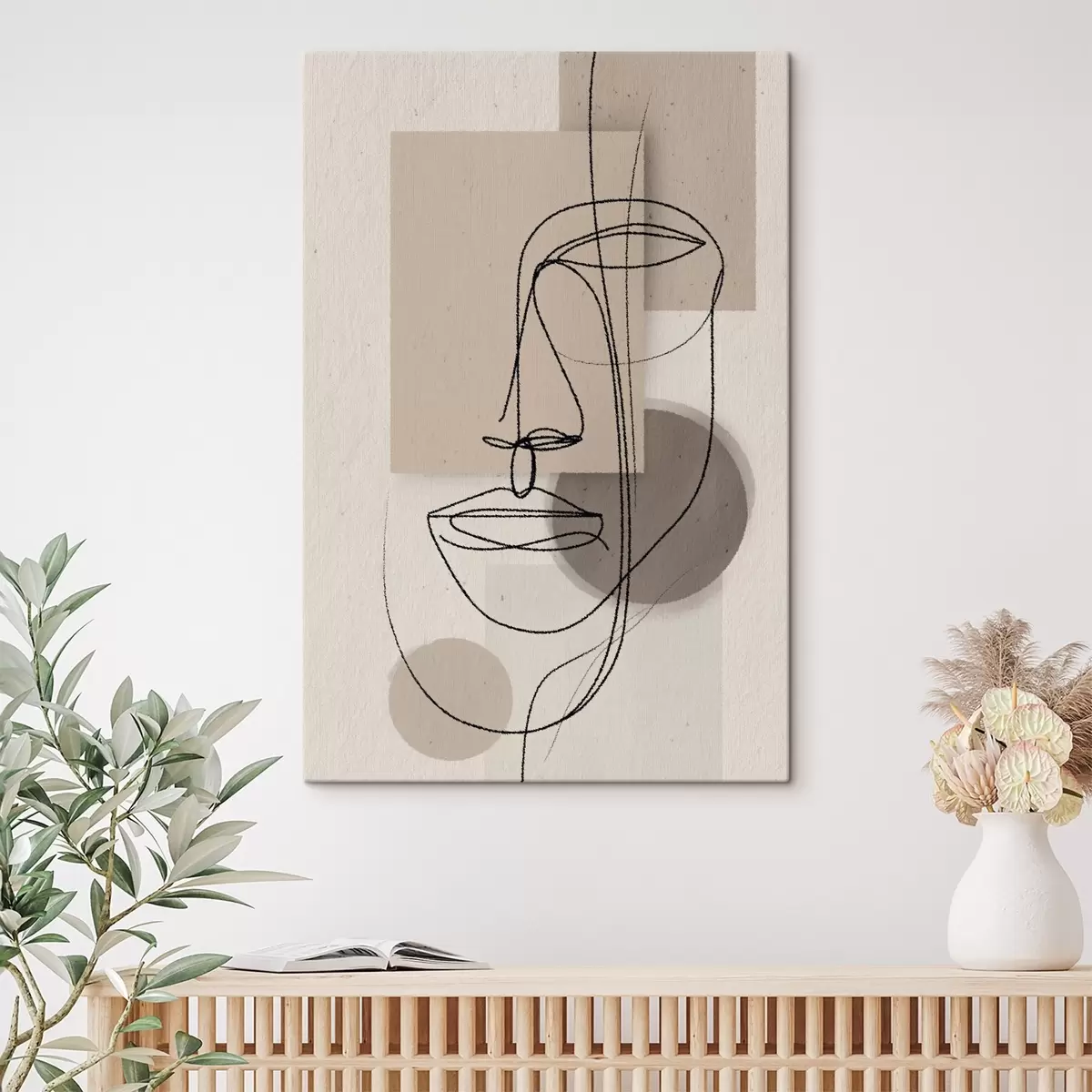 Obraz Portret na tle beżowych geometrycznych kształtów Nr s45886