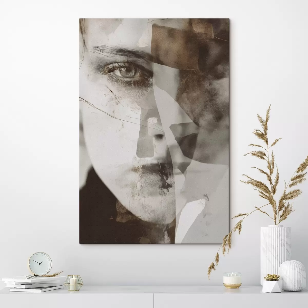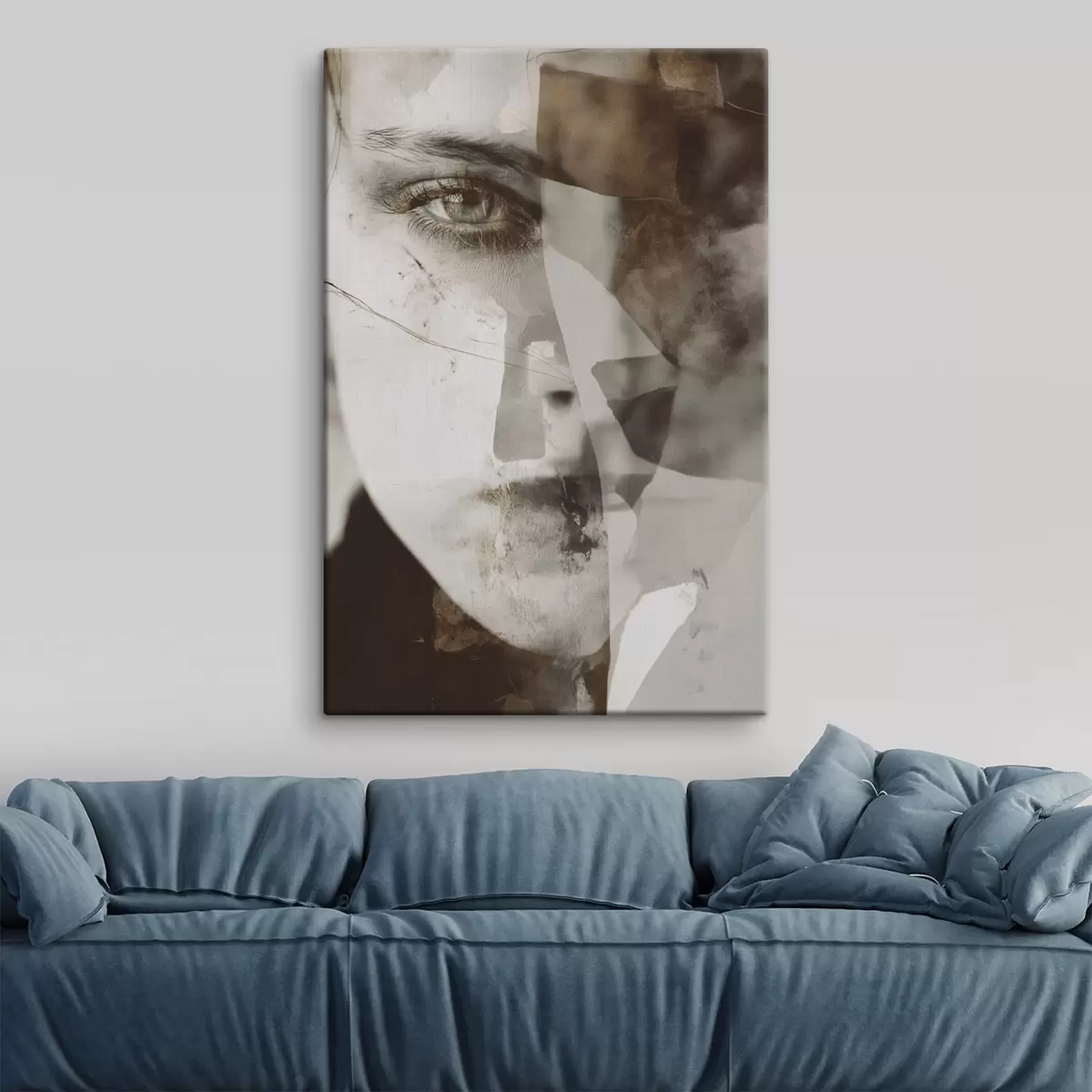 Obraz Abstrakcyjny portret w sepiowym odcieniu, faktury i plamy Nr s45897