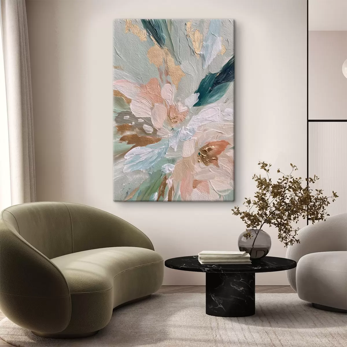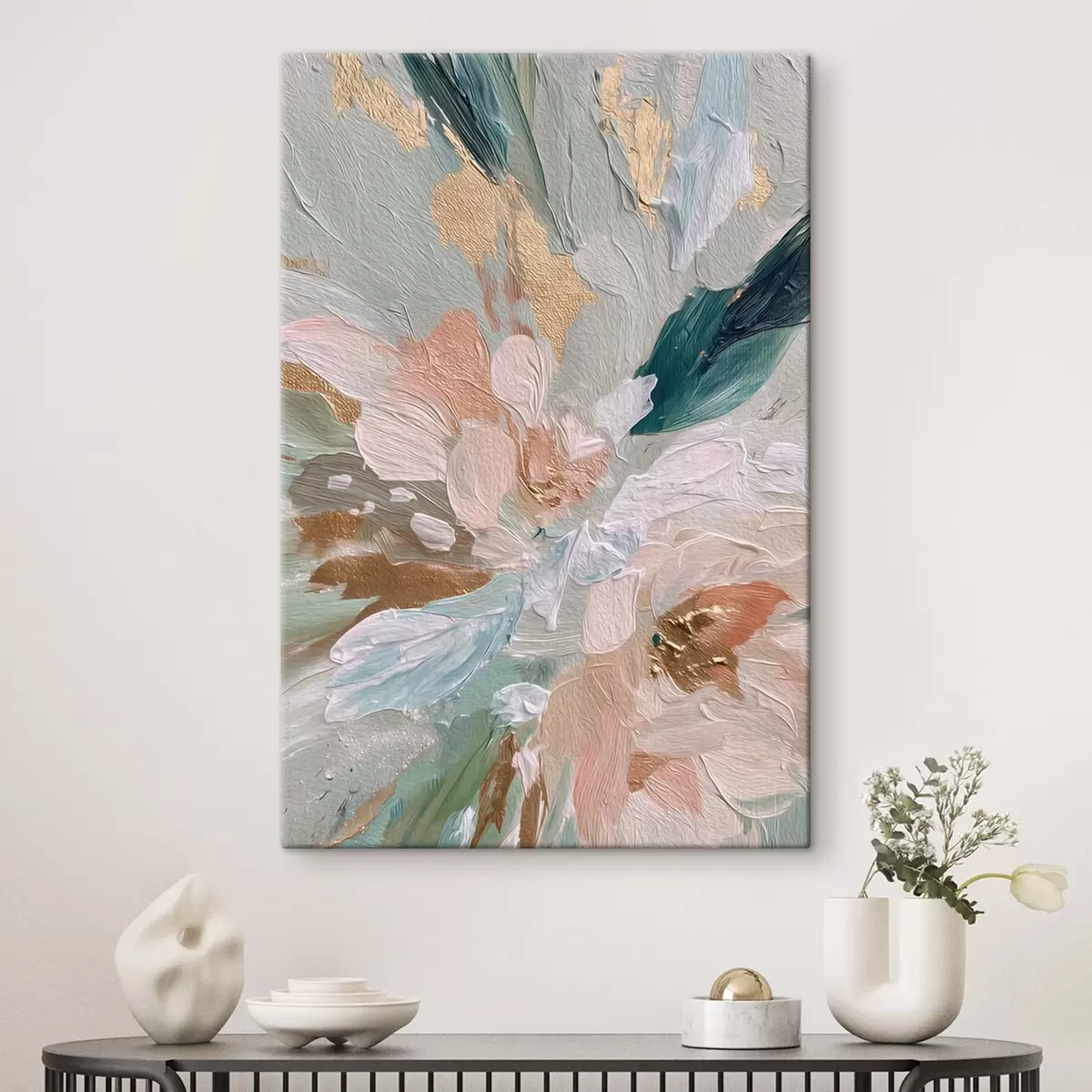 Obraz Pastelowe kwiatowe pociągnięcia pędzlem z żółtymi plamkami Nr s45899