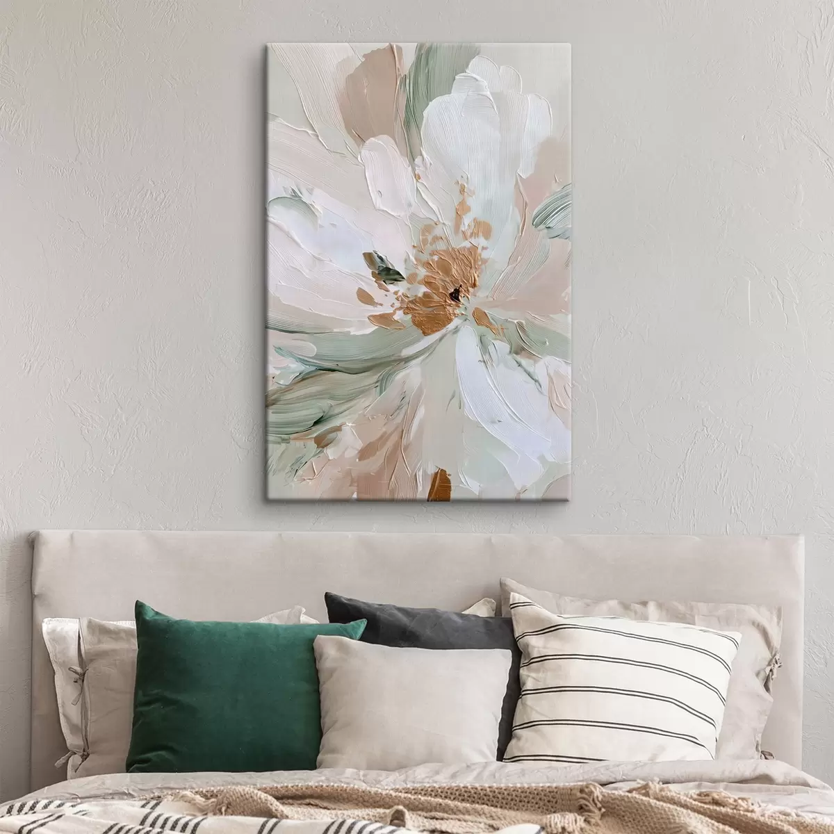 Obraz Kwiat w technice impasto w pastelowych barwach z żółtymi akcentami s45900
