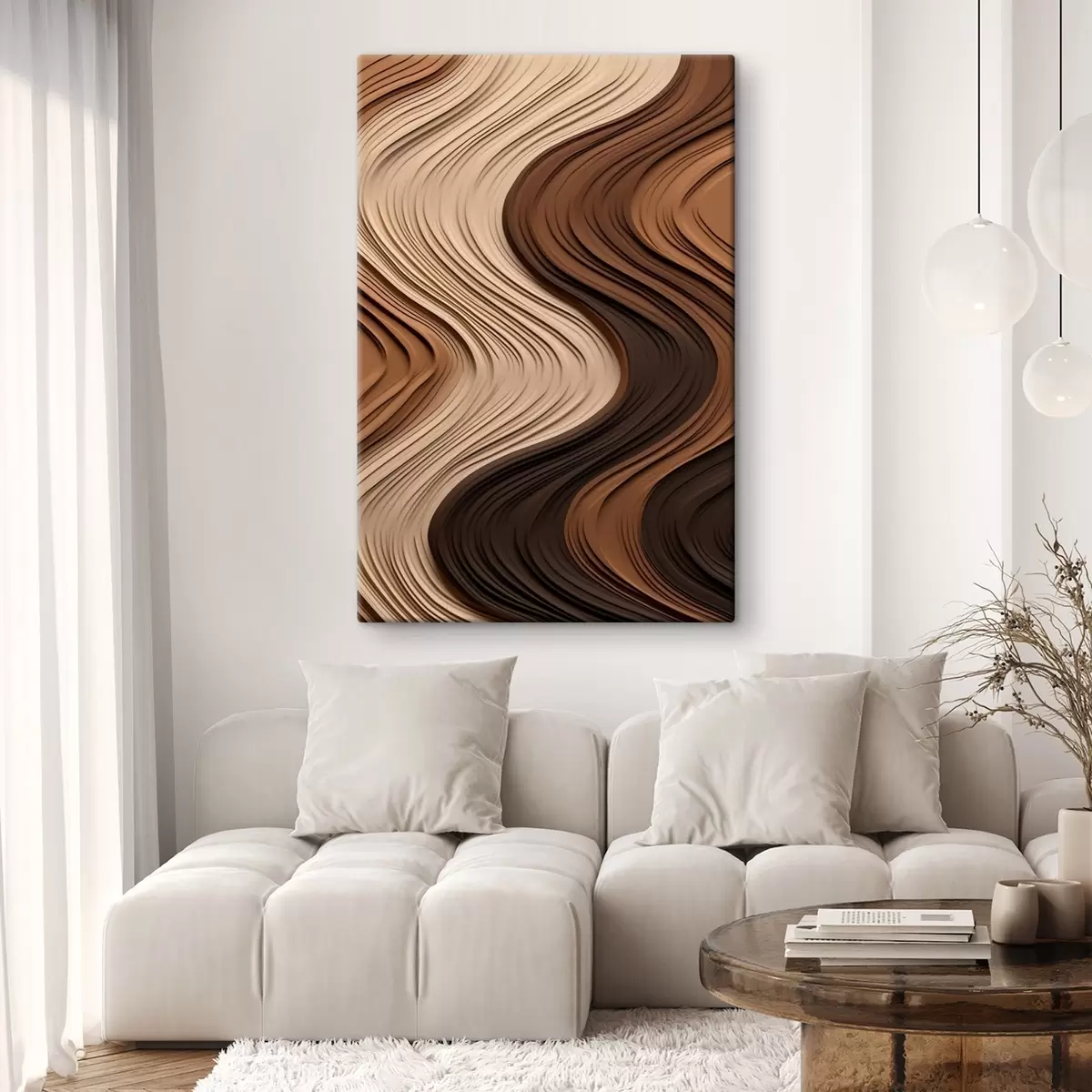 Obraz Pionowe fale w ciepłych beżowo-brązowych warstwach s45905