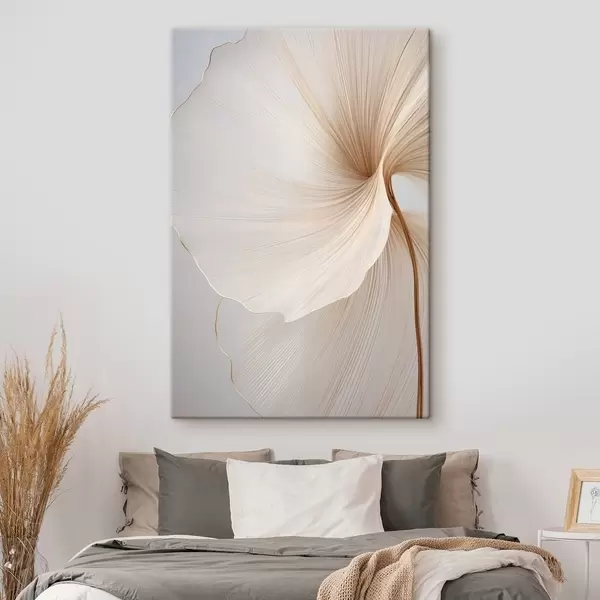 Obraz Abstrakcyjne kwiaty o cienkich, delikatnych płatkach w odcieniach bieli i beżu Nr s45922