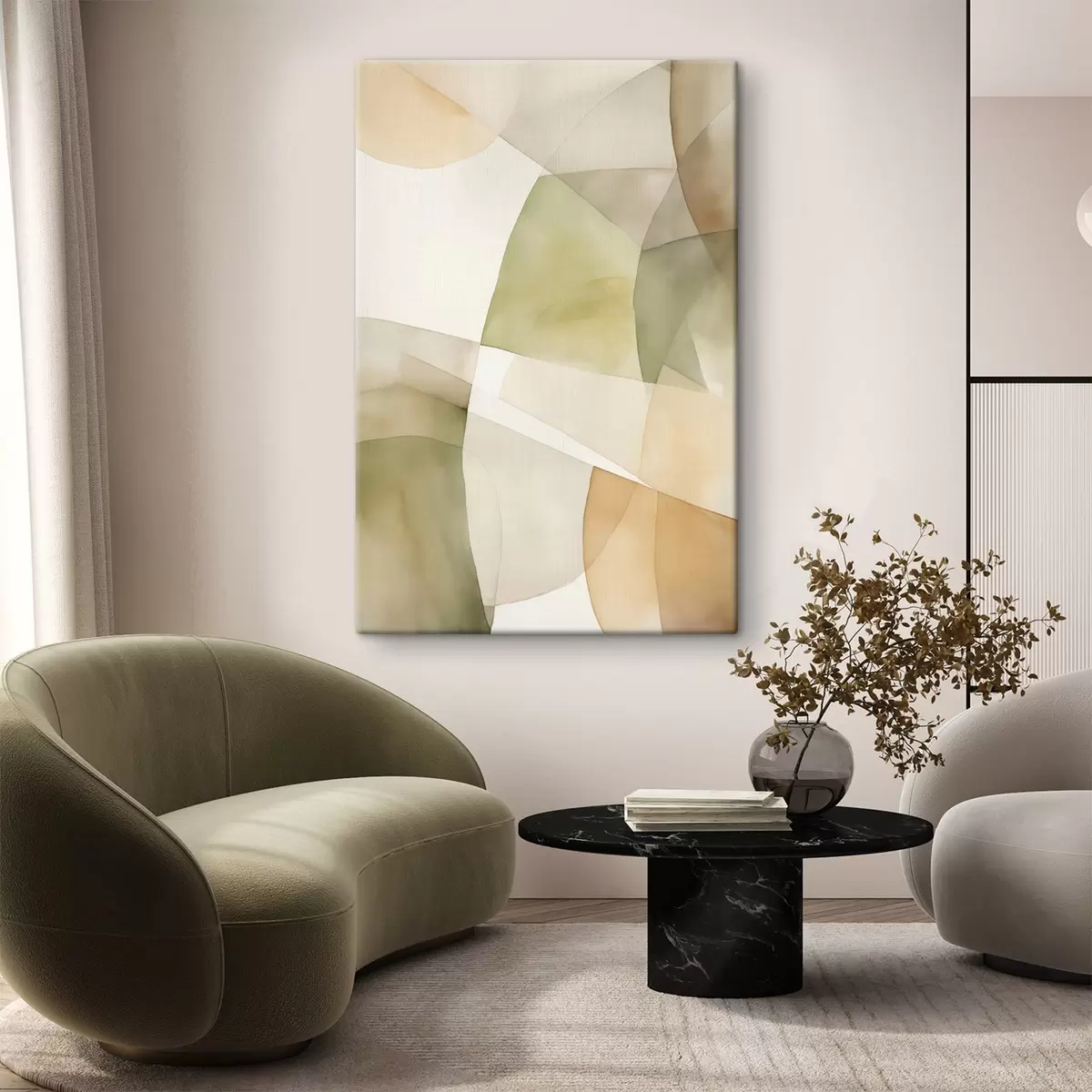 Obraz Abstrakcyjne geometryczne kształty o fakturze akwareli w odcieniach zieleni, brązu i beżu Nr s45928