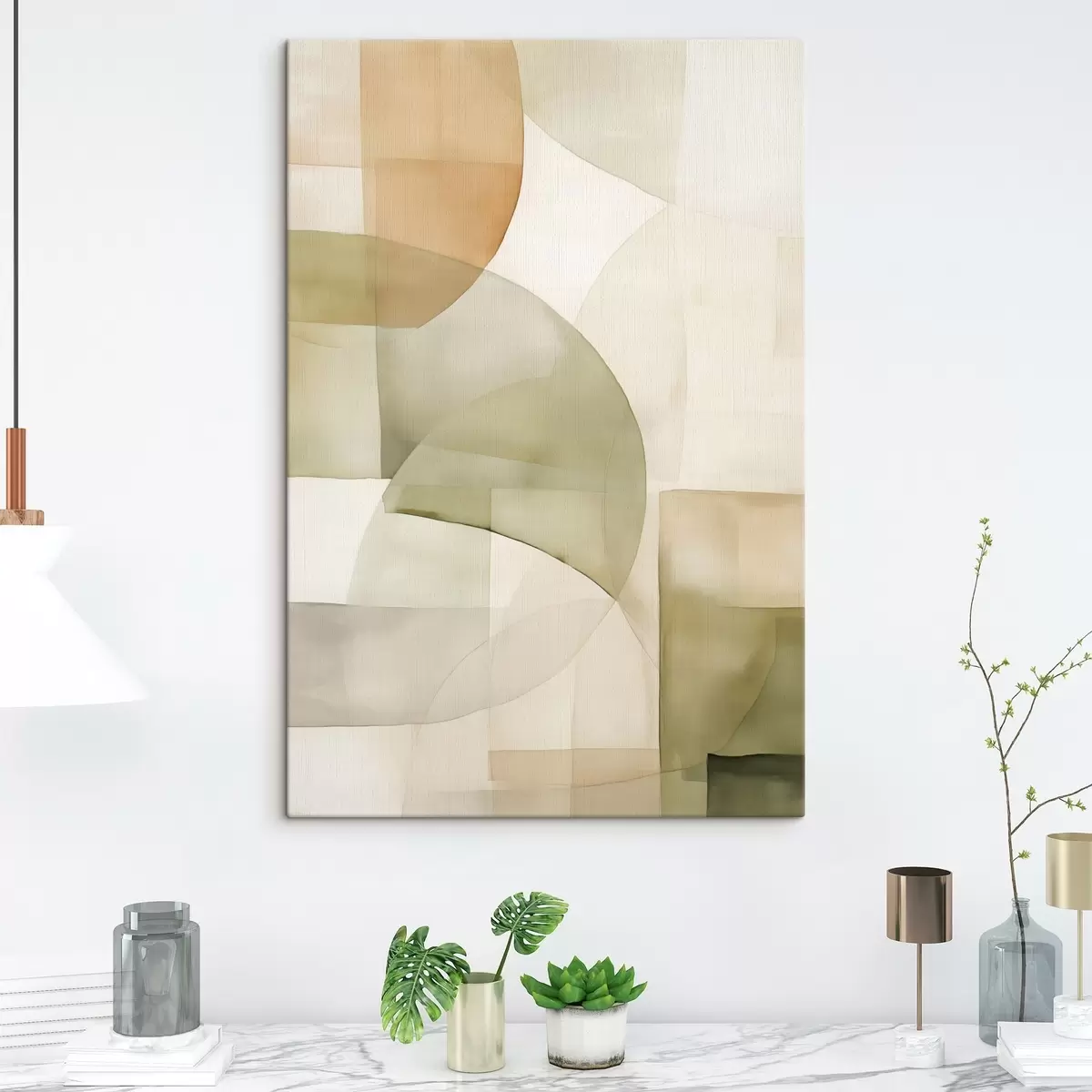 Obraz Abstrakcyjne geometryczne kształty o fakturze akwareli w odcieniach zieleni, brązu i beżu s45929