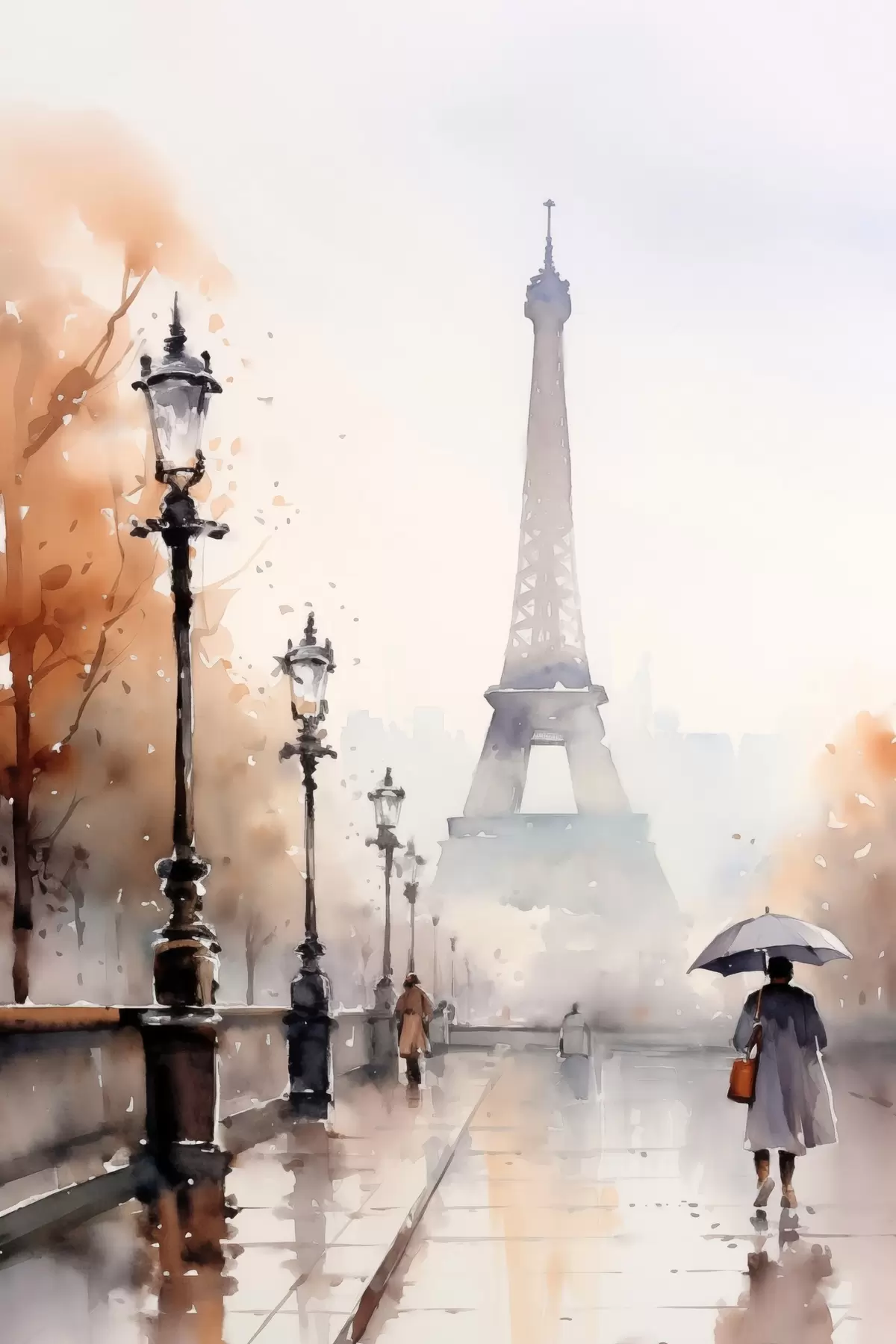 Obraz Deszczowy dzień w Paryżu z Wieżą Eiffla w tle i zabytkowymi latarniami ulicznymi Nr s45930