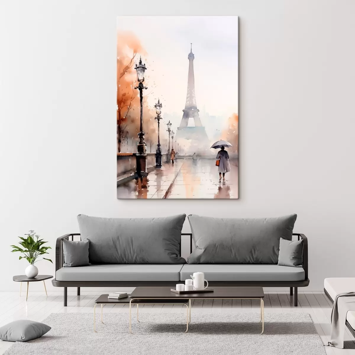 Obraz Deszczowy dzień w Paryżu z Wieżą Eiffla w tle i zabytkowymi latarniami ulicznymi s45930