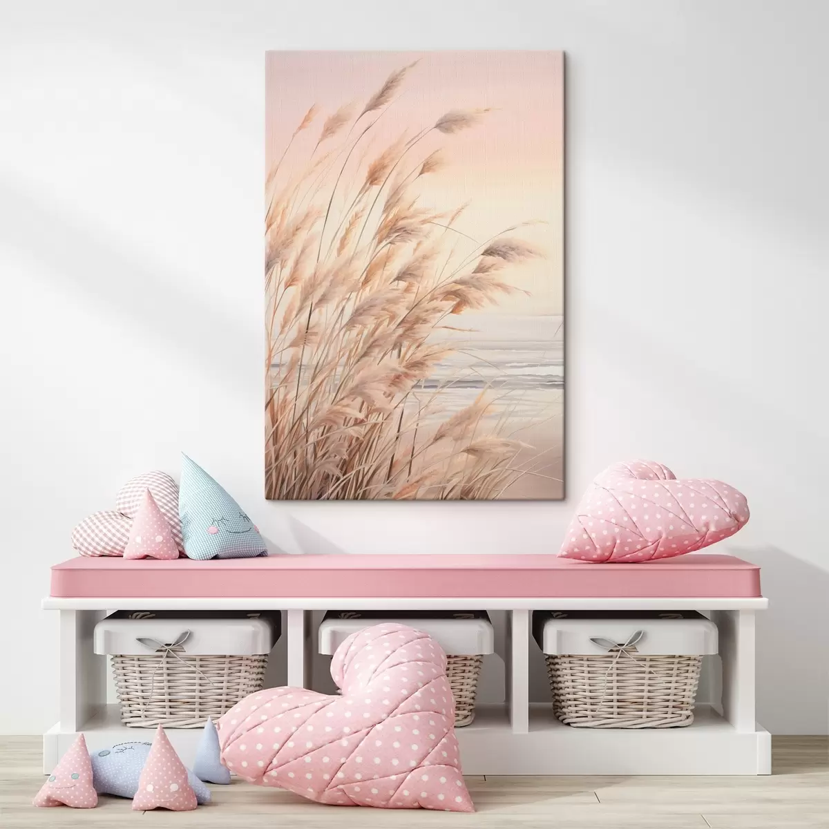 Obraz Trawa pampasowa w pastelowej pomarańczowej kolorystyce, jasnoróżowe niebo, spokojny krajobraz Nr s45934