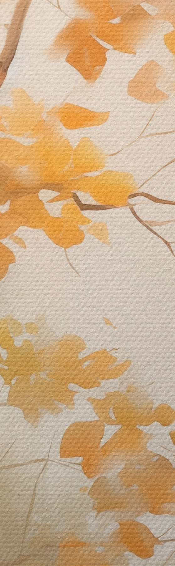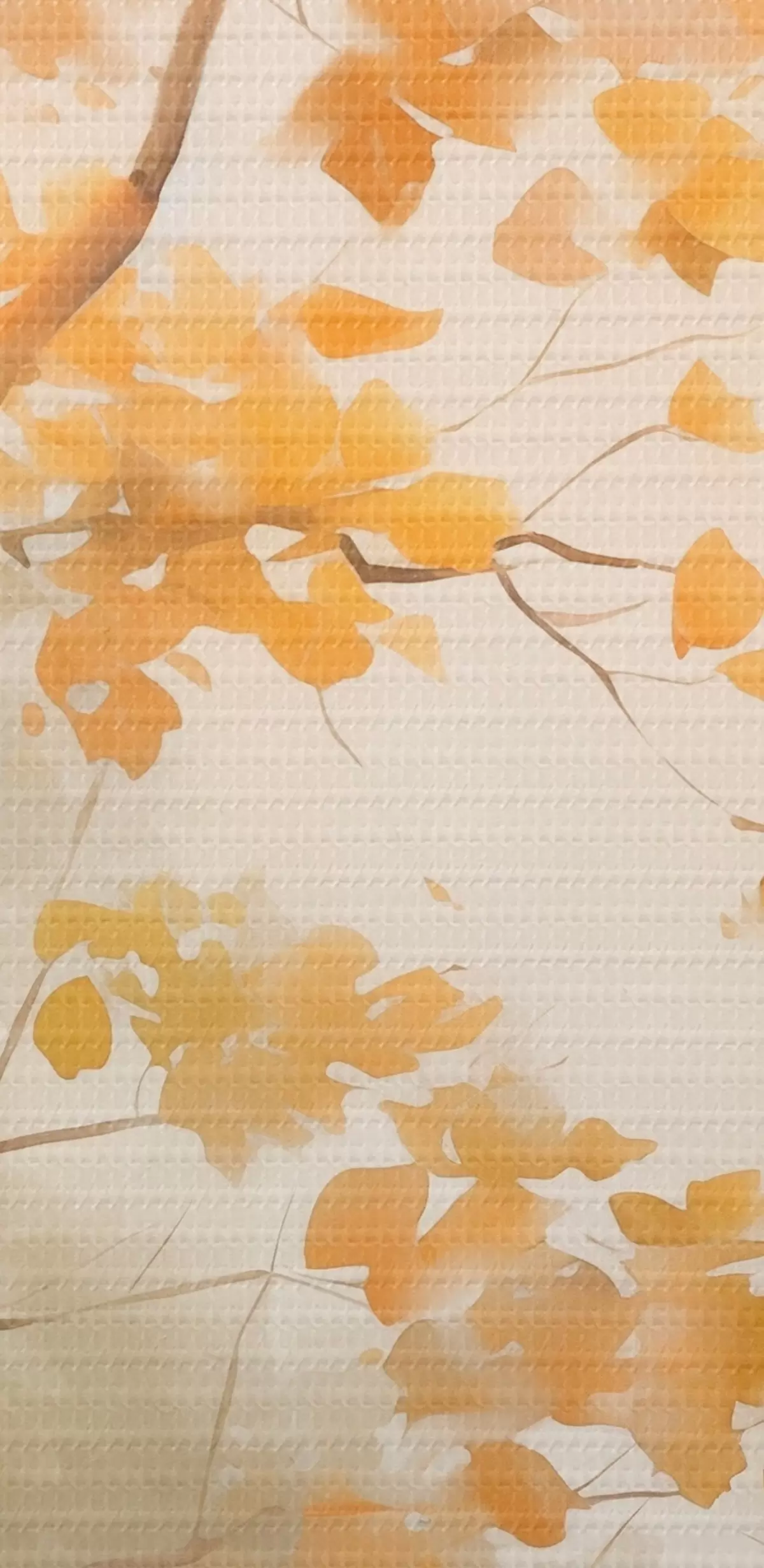 Obraz Jesienne gałęzie drzew z pomarańczowymi liśćmi w lesie w delikatnym świetle s45940