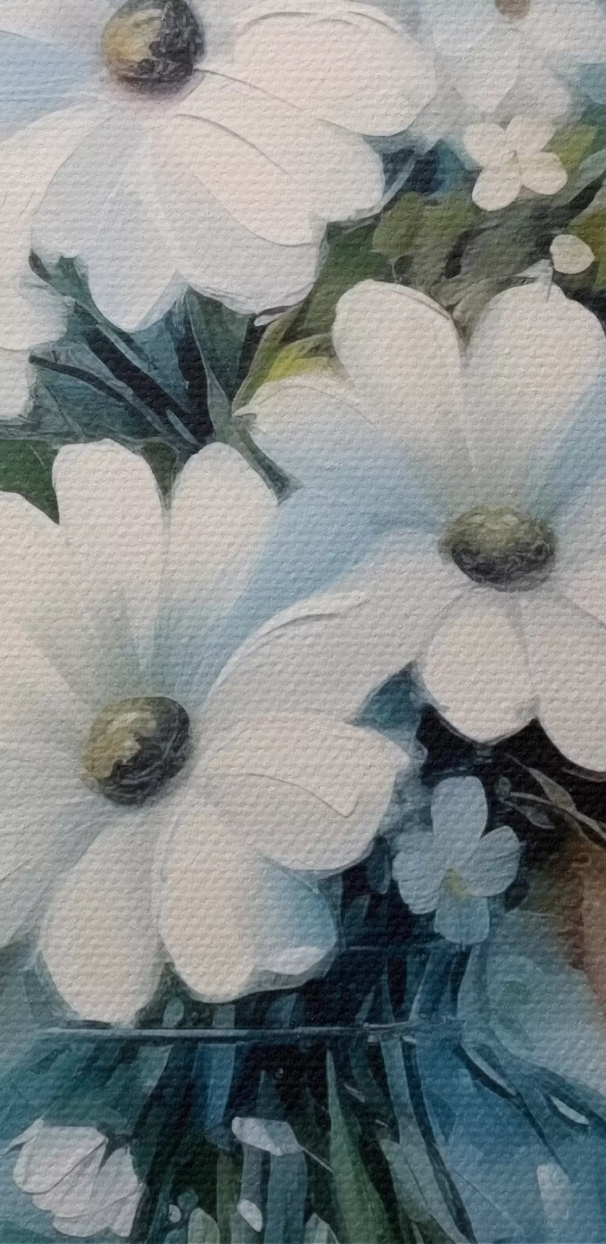 Obraz Bukiet stokrotek w niebieskim wazonie Nr s45959