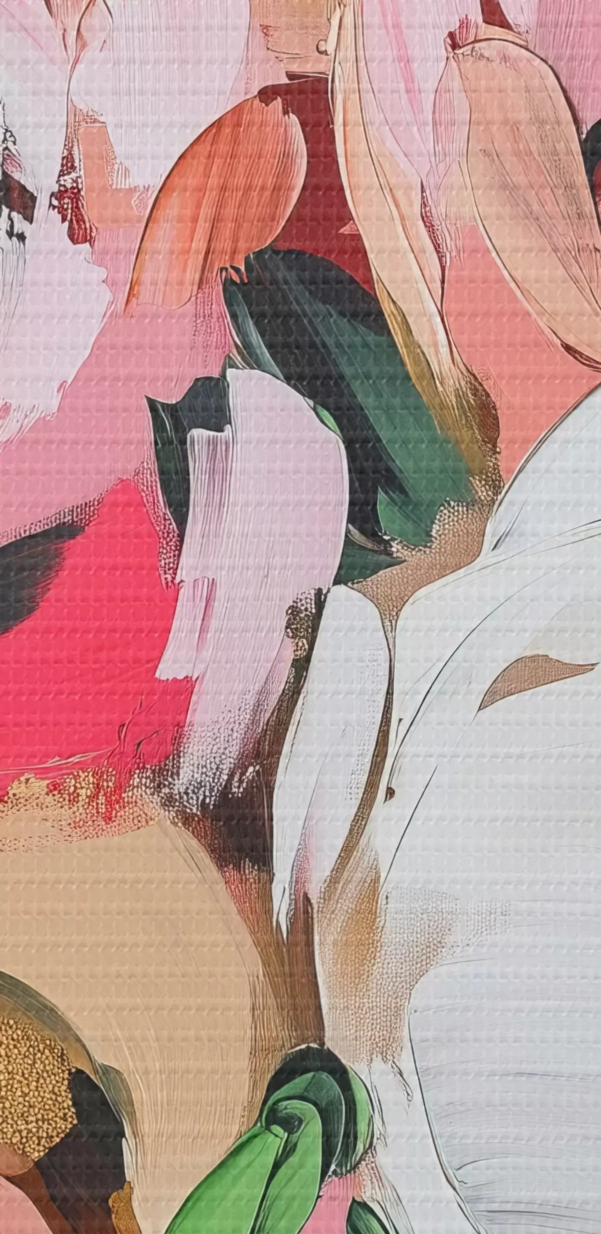 Do zamówienia dostępne są trzy rodzaje materiału: Economic Canvas - gęsty i trwały materiał do druku cyfrowego, identyczny z płótnem malarskim, wodoodporna powierzchnia, realistyczne odwzorowanie szczegółów, materiał średnioziarnisty. Premium Canvas - tekstura przypominająca płótno malarskie (przeplatane drobne nitki). Miękka, szczegółowa reprodukcja obrazu na matowej powierzchni. Eco-Premium - wysokiej jakości tkanina w 100% bawełniana. Dzięki naturalnym włóknom bawełnianym materiał jest trwały i odporny na zużycie. Doskonałe odwzorowanie kolorów i szczegółów.