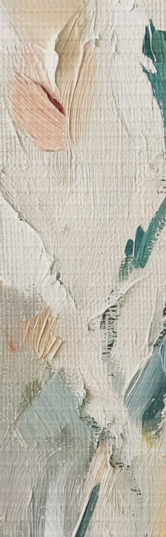 Drobny splot nici na tym płótnie przypomina powierzchnię profesjonalnych płócien artystycznych.