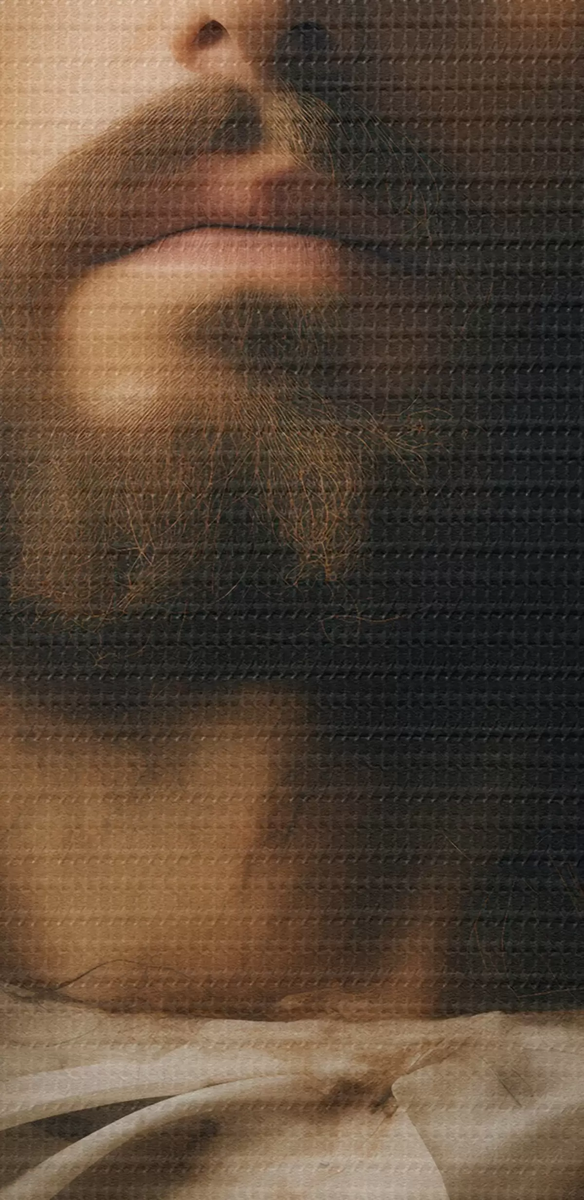 Drobny splot nici na tym płótnie przypomina powierzchnię profesjonalnych płócien artystycznych.