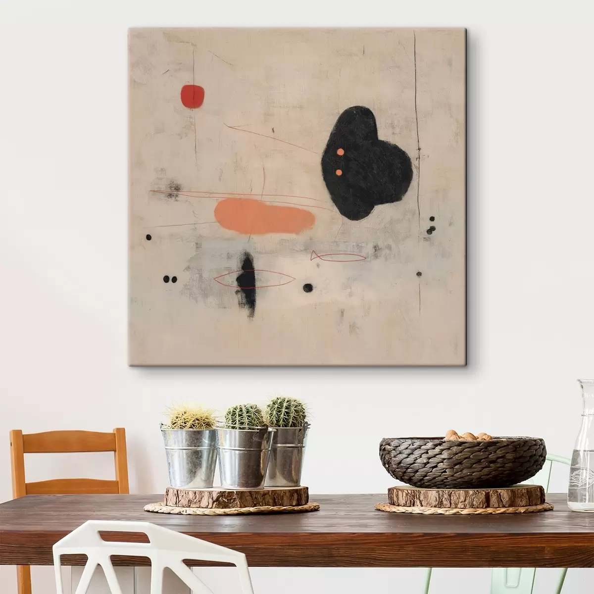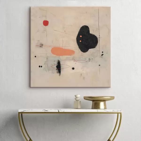 Obraz Minimalistyczny rysunek abstrakcyjny z czarnymi i koralowymi akcentami Nr s46159
