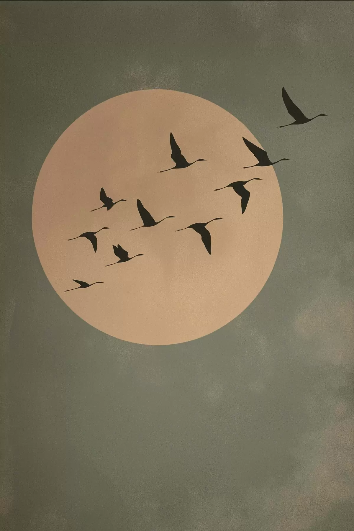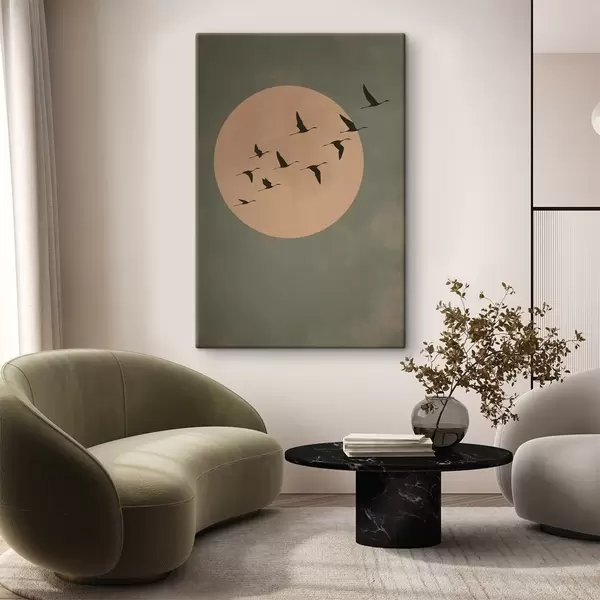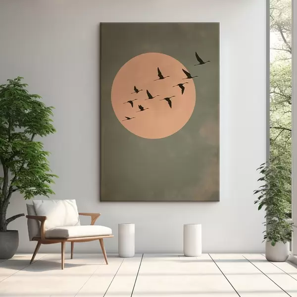 Obraz Stado ptaków lecące na tle dużego, ciepłego księżyca Nr s46162