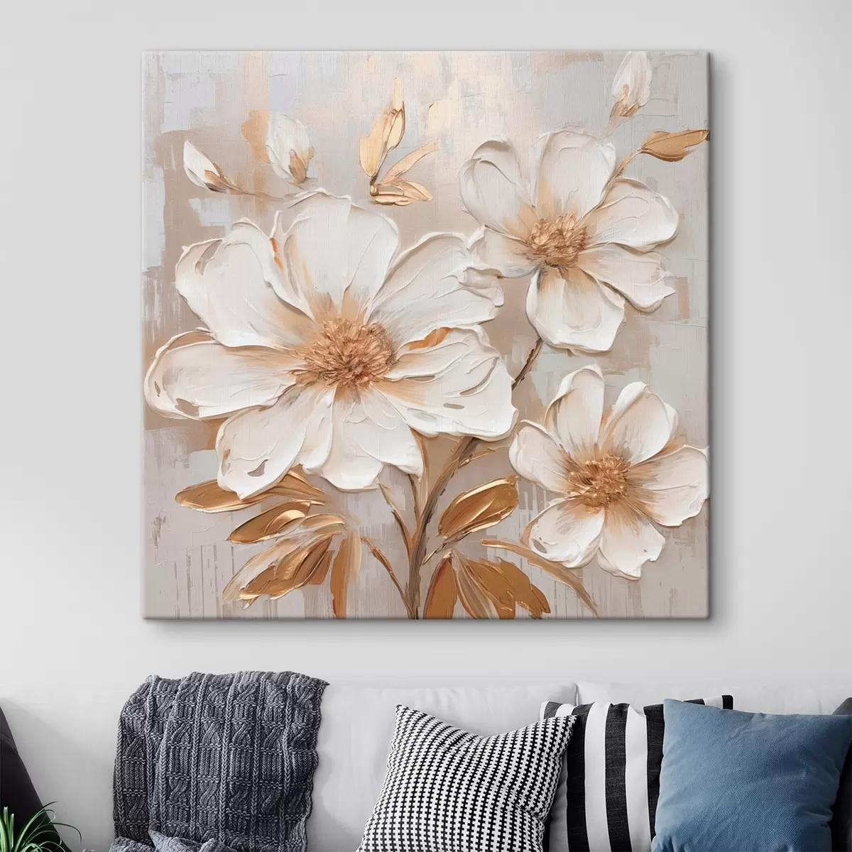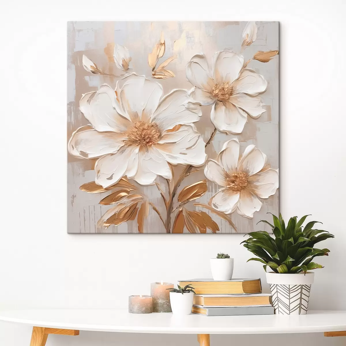 Obraz Teksturowane kwiaty na jasnym tle w ciepłych odcieniach Nr s46166