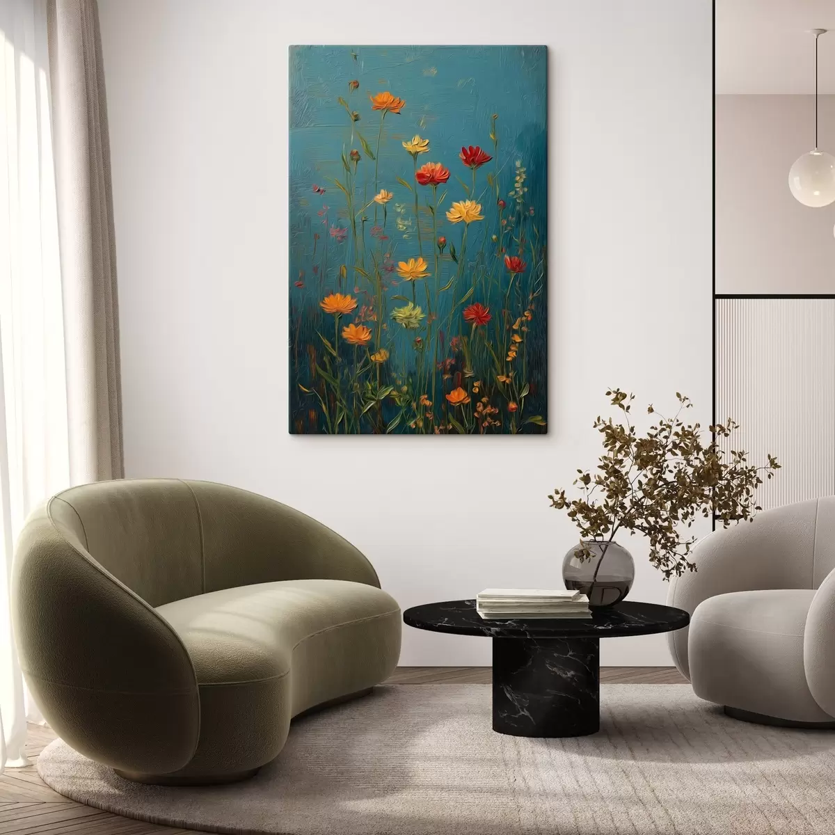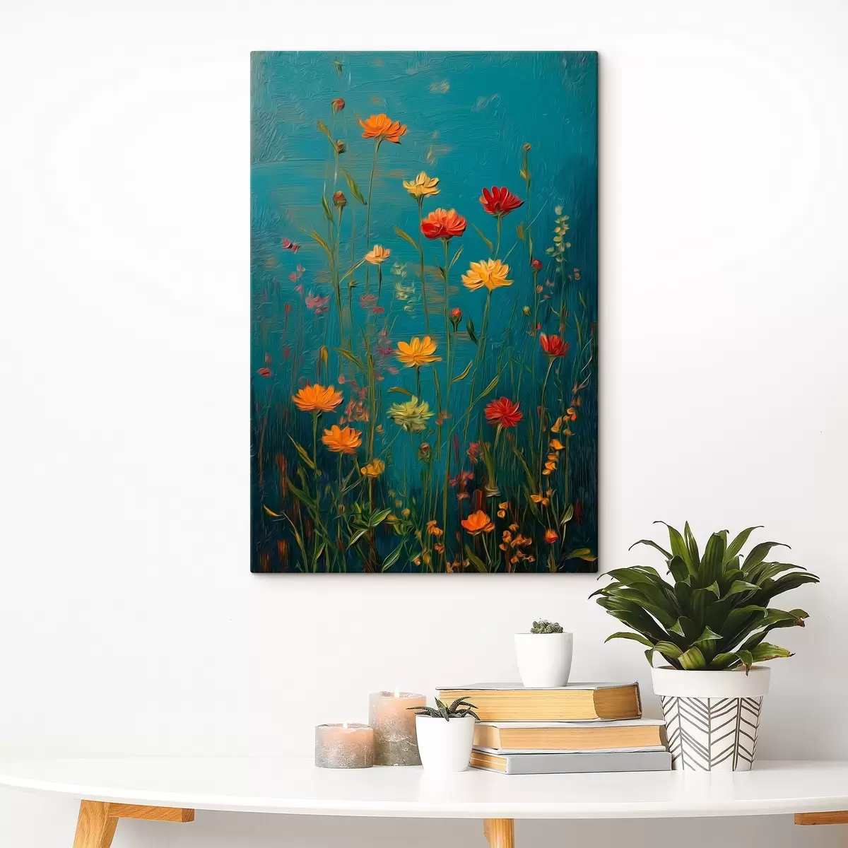 Obraz Kwiaty polne na ciemnym turkusowym tle Nr s46169