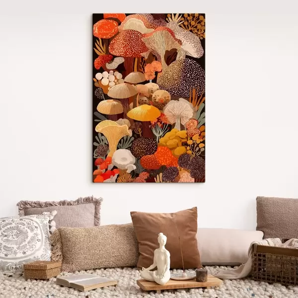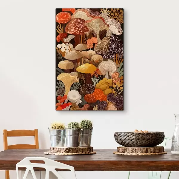 Obraz Kompozycja różnych grzybów leśnych w ciepłych barwach Nr s46170