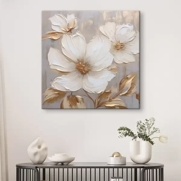 Obraz Duże, teksturowane kwiaty z pociągnięciami pędzla w ciepłej palecie barw Nr s46176