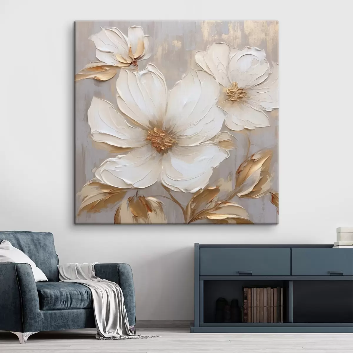 Obraz Duże, teksturowane kwiaty z pociągnięciami pędzla w ciepłej palecie barw Nr s46176
