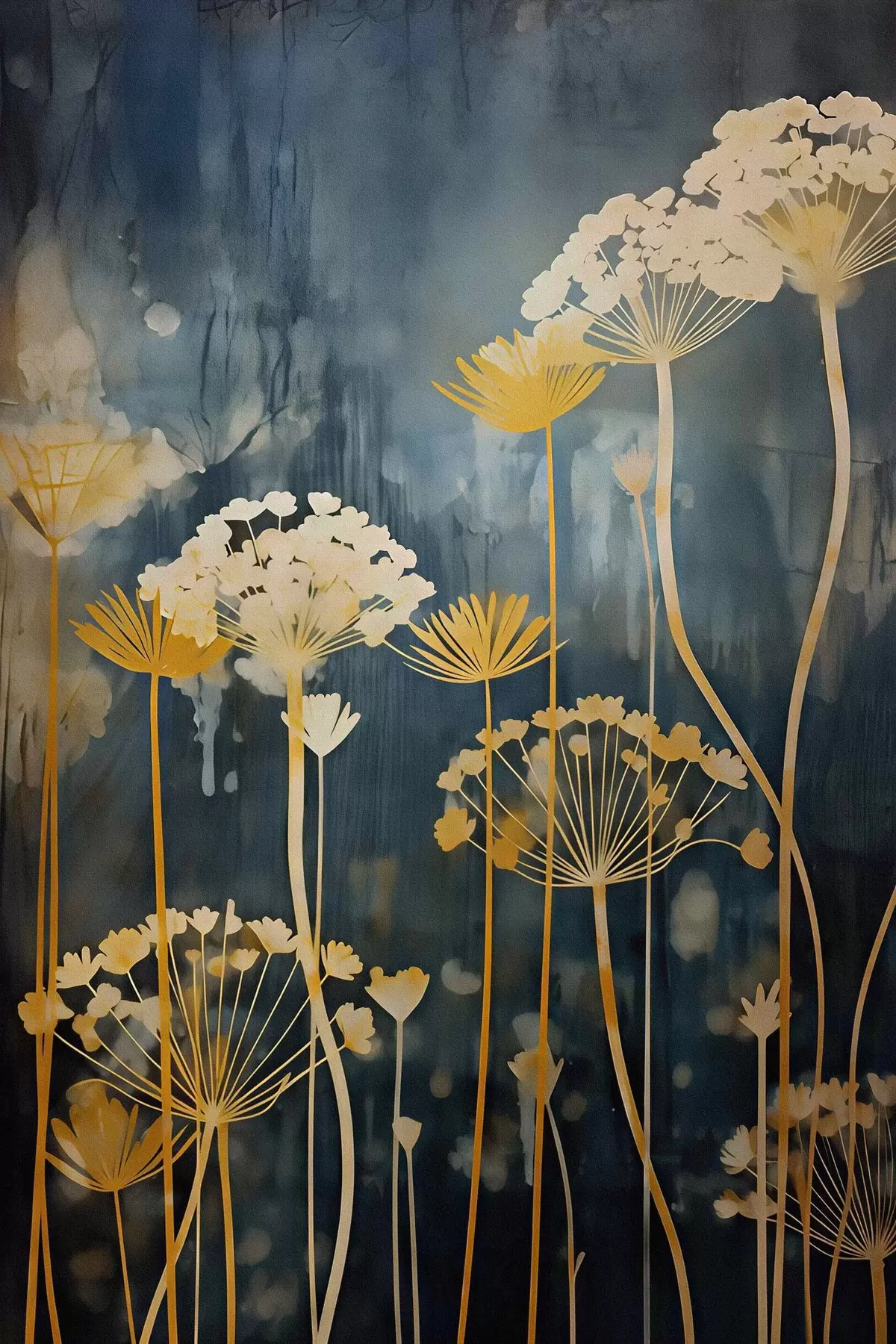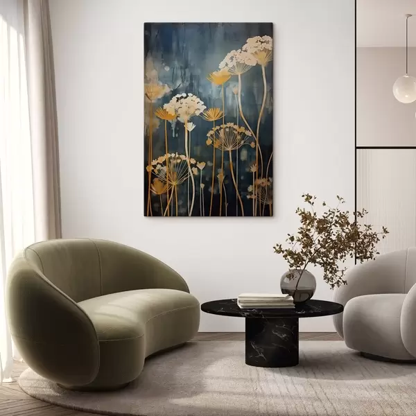 Obraz Stylizowane kwiaty o cienkich łodygach na ciemnym tle Nr s46188
