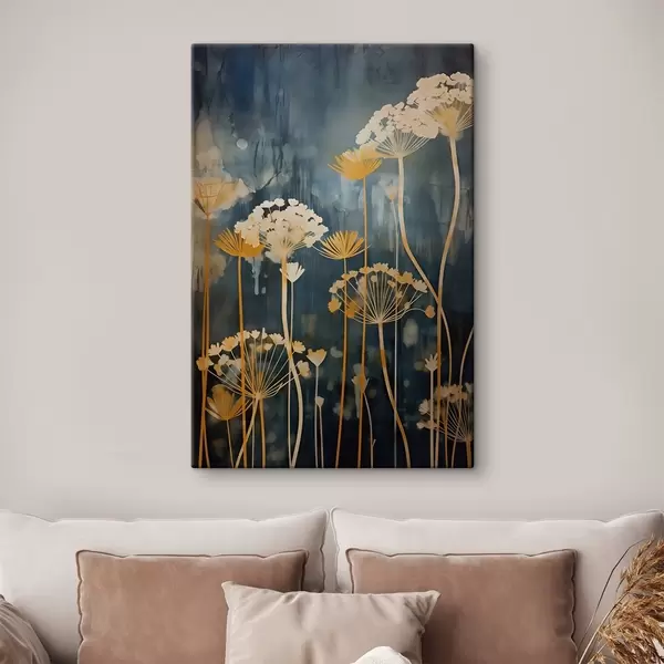 Obraz Stylizowane kwiaty o cienkich łodygach na ciemnym tle s46188