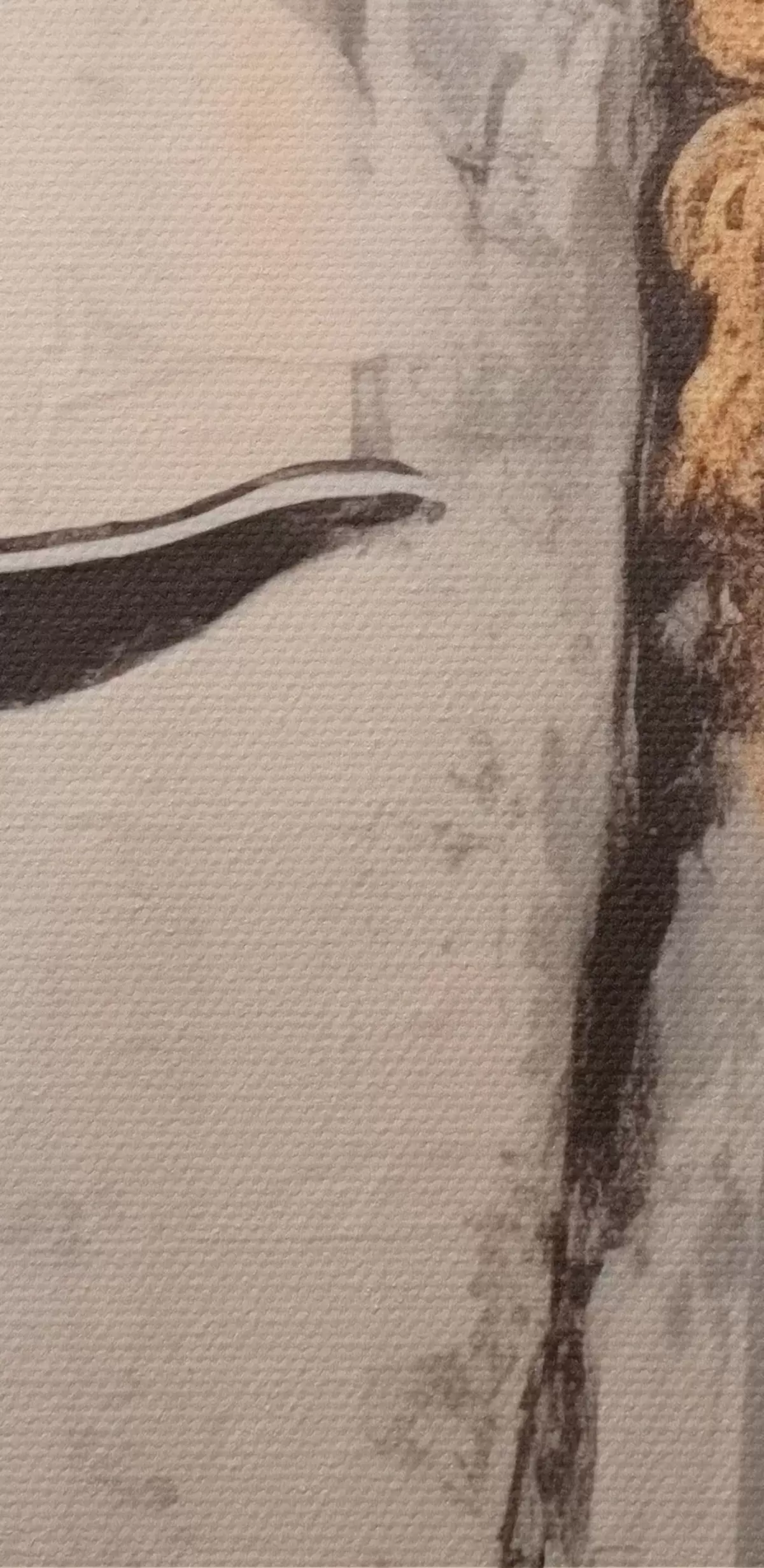Drobny splot nici na tym płótnie przypomina powierzchnię profesjonalnych płócien artystycznych.
