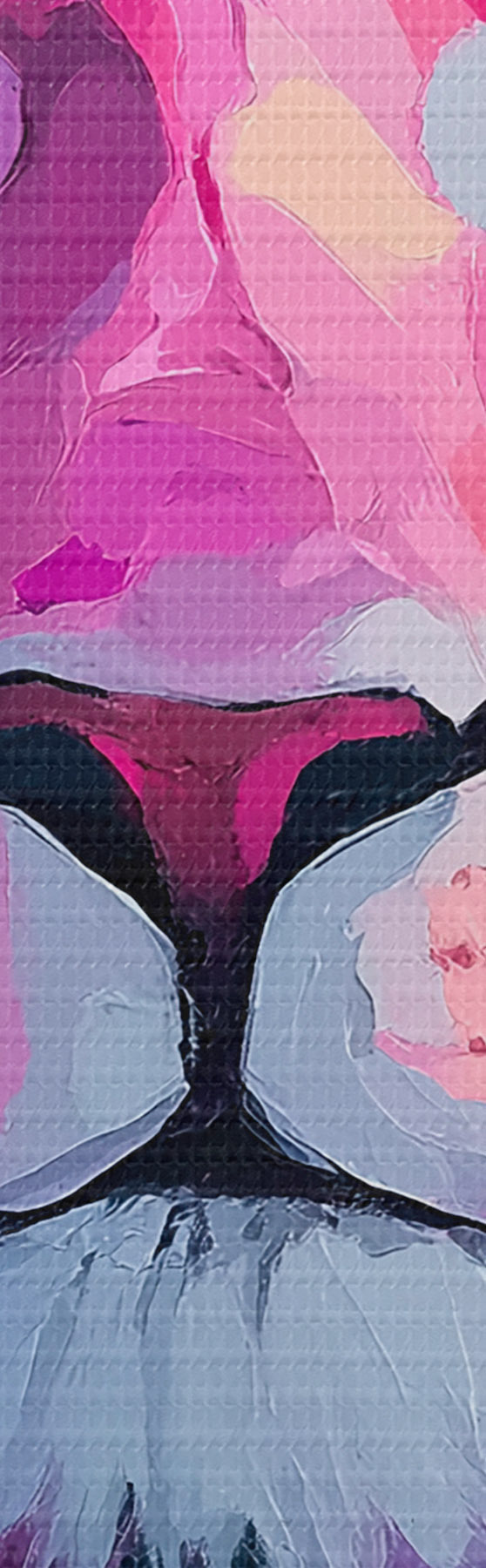 Drobny splot nici na tym płótnie przypomina powierzchnię profesjonalnych płócien artystycznych.