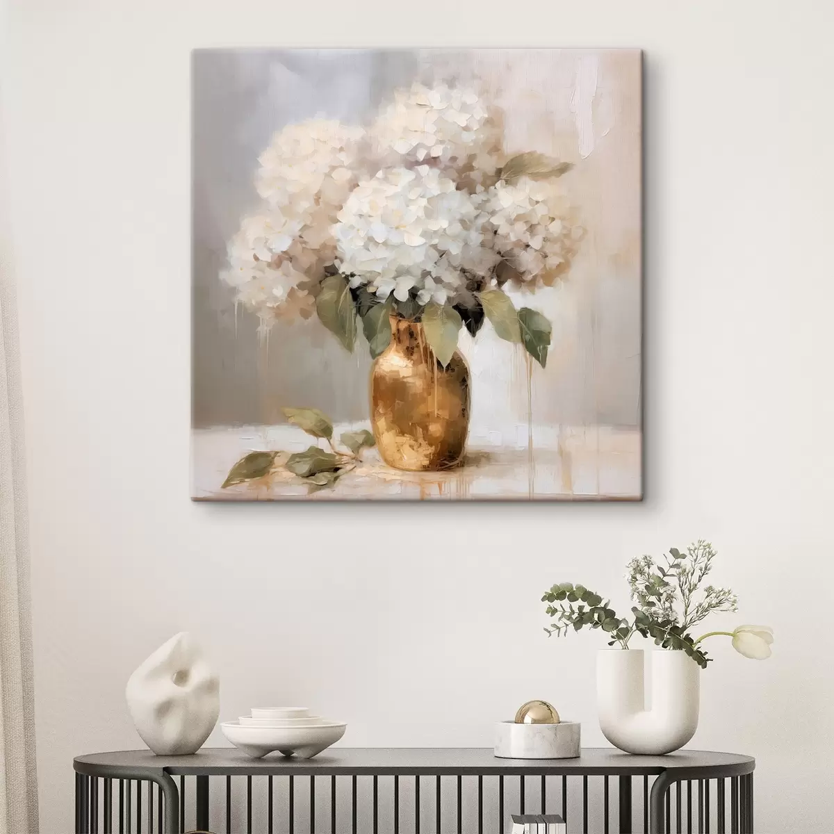 Obraz Delikatny bukiet hortensji w wazonie Nr s46263