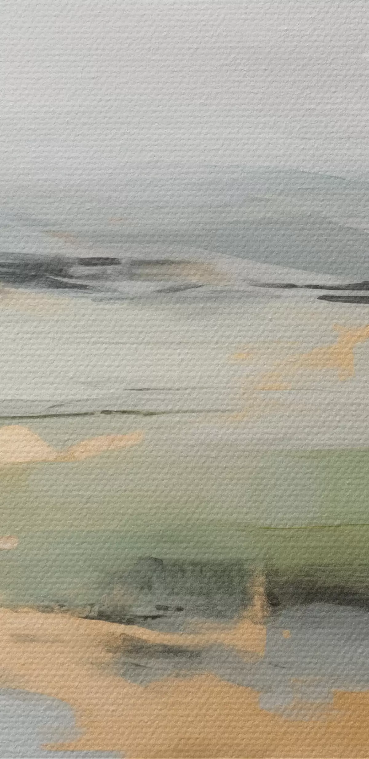 Obraz Abstrakcyjny pejzaż z żółtymi akcentami, minimalistyczna kompozycja ziemi, wody i nieba, w stonowanej kolorystyce Nr s46269