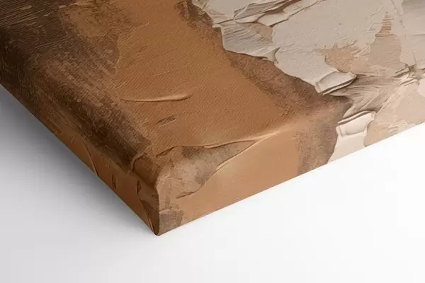 Obraz Malarstwo abstrakcyjne z grubymi pociągnięciami pędzla, beżowymi i brązowymi odcieniami, teksturowaną powierzchnią, neutralną paletą kolorów s46272