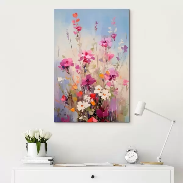 Obraz Żywe różowe, białe i zielone kwiaty na delikatnym, pastelowym tle Nr s46278