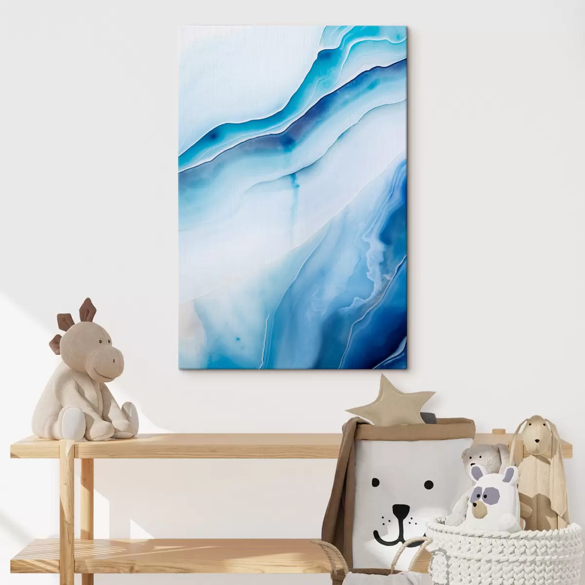 Obraz Abstrakcyjny wzór z niebieskiego i białego agatu, wirujące linie i gradienty, gładka faktura, sztuka nowoczesna, minimalistyczny s46291