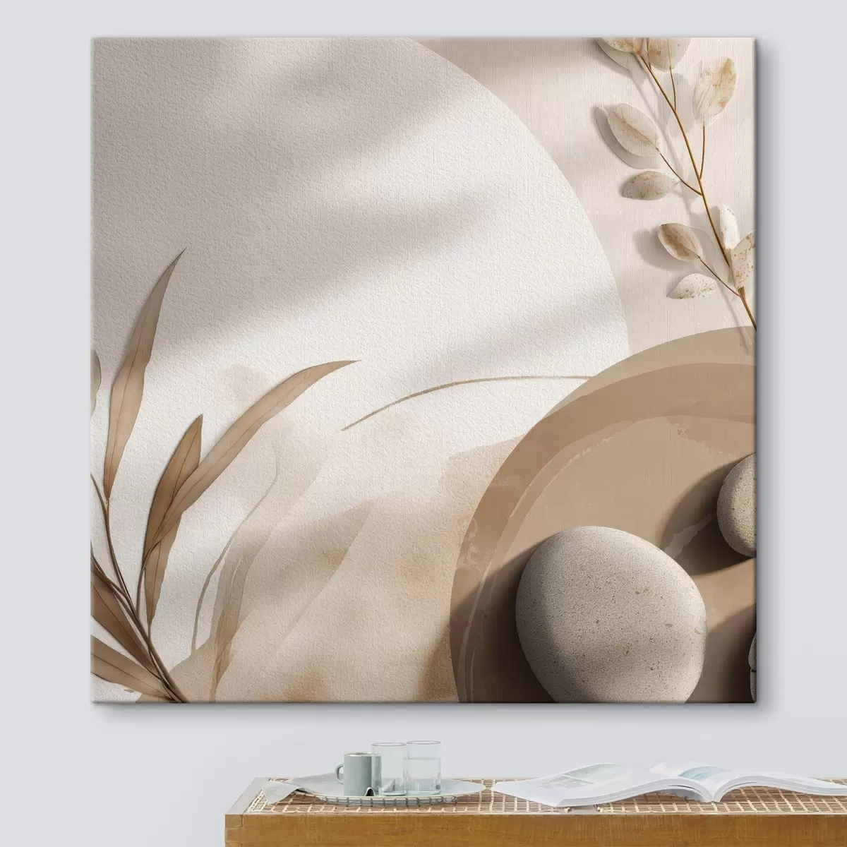 Obraz Kamienie i cienie na ścianie w odcieniach beżu Nr s46311