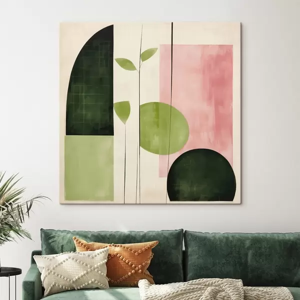 Obraz Nowoczesny minimalistyczny styl z różowymi i zielonymi blokami Nr s46312